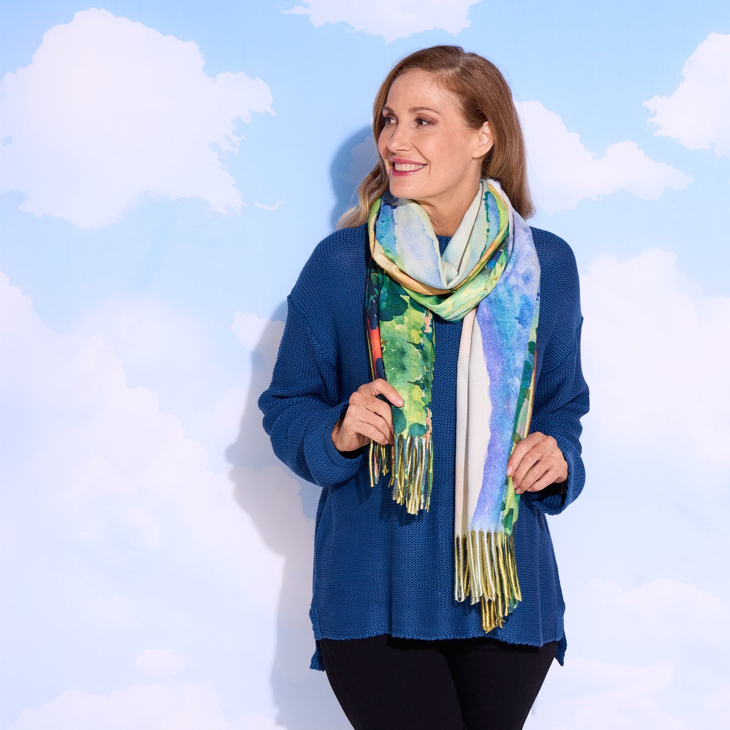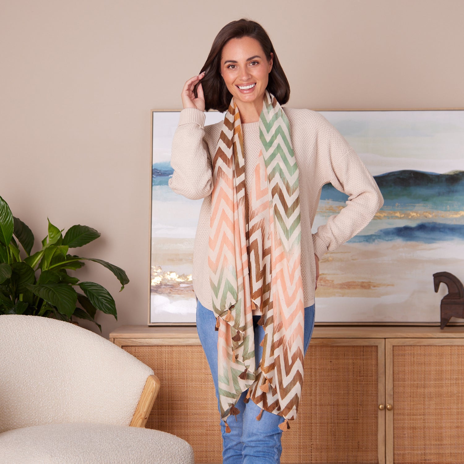 The key to styling a scarf starts with choosing one that works with your lifestyle and wardrobe. Lightweight fabrics like cotton blends and soft viscose are perfect for year-round wear, offering breathability while still adding polish. For cooler months, opt for cosy textures that provide warmth without feeling bulky.
