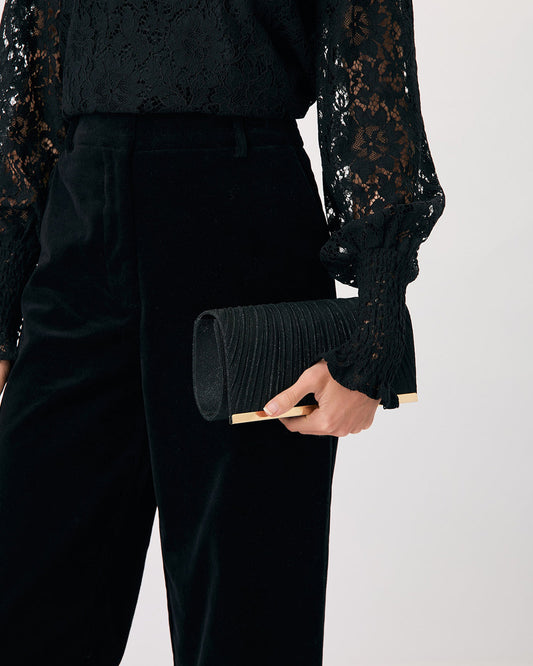 Linnie Pleat Fold Over Clutch - Black/Gold