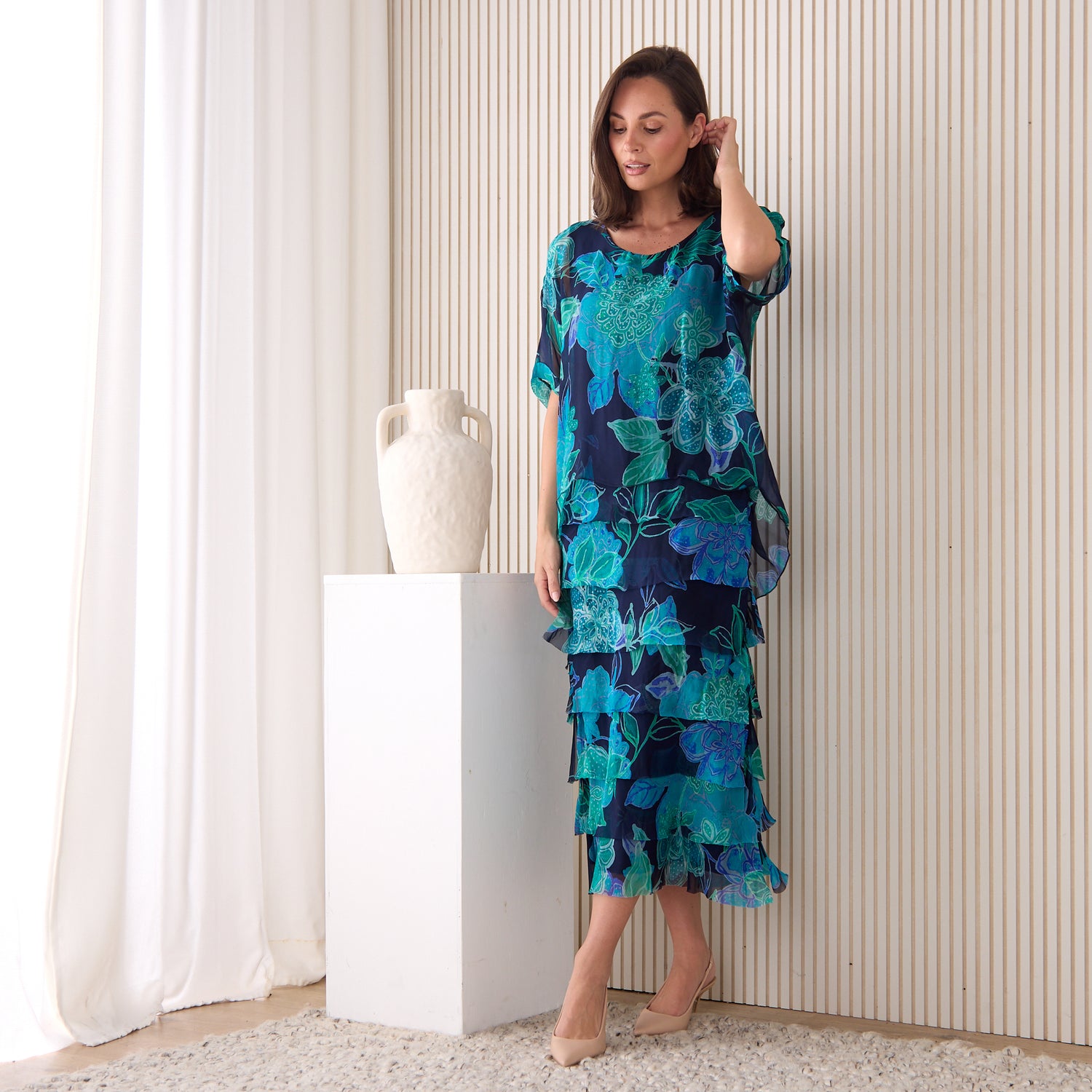 Wore this beautiful dress to dinner tonight. Love the style and fabric is so light and easy to wear for summer