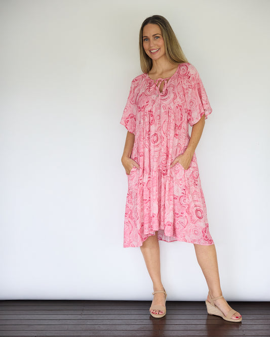Wore this beautiful dress to dinner tonight. Love the style and fabric is so light and easy to wear for summer