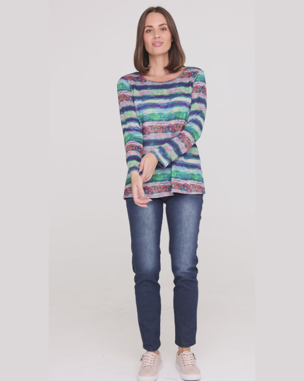 Camden Long Sleeve Knit Top - Purple/Green Print