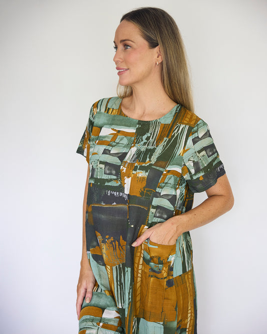 The size chart says bust for size 20 is 124-130cms. I disagree. Laid flat from armpit to armpit on mine is 60cms = 120cms. I hand washed inside out in cold water with mild detergent, did not soak or wring out, hung on a hanger to drip dry in shade & it did not shrink. I give a cool light iron and it is ready to go. I think you could probably get away without an iron but I prefer wearing after a light iron to relax the fabric and smooth out the wrinkles, albeit not many. The fabric is so lovely, light & cool to wear. The other day when I wore it, the weather was warm and humid (not Darwin or QLD humid) but after a very cold winter, & Spring not having really sprung properly yet in ADL/ weird & different weather every day, & not being used to warm weather yet, the dress did not stick to me. The pattern is so pretty. It sits really nicely under my bust, flows over & does not cling to my tummy & does not look frumpy, so I feel more confident. It is very comfortable across my bust & does not feel tight which is often the problem for me. The sleeves are a great length and hide my chubby upper arms that I don't like to reveal. I love the length too. I am tall at about 178cms (I think!!) & it is below my knee which I also feel more confident with. I have issues sometimes with dress waist ties being too low and just not working for me & quite frankly look weird & ridiculous sitting on my hips. My preference is a higher waist tie not too far under the bust to get a good A-line shape. WIth this dress the position of the seam of the bodice where it meets the skirt is good for me - higher than my hips giving a good shape. The skirt with the godets is just lovely giving it some body and floats about nicely. I thought I might be too big for this style but it actually works for me giving me some shape without being restricted with waist ties or elastic or shirring. For me the 20 is fitted but still roomy and so very comfortable. I am learning to try and not buy clothes that are WAY too big for me. I cannot hide the fact that I am big, but if I wear clothes that are not 2 sizes too big it is more flattering!! Tulio are also great to deal with and very responsive to emails and very helpful. Shipping was fast!! I hope this review helps some ladies out there. Thank you for reading :-)