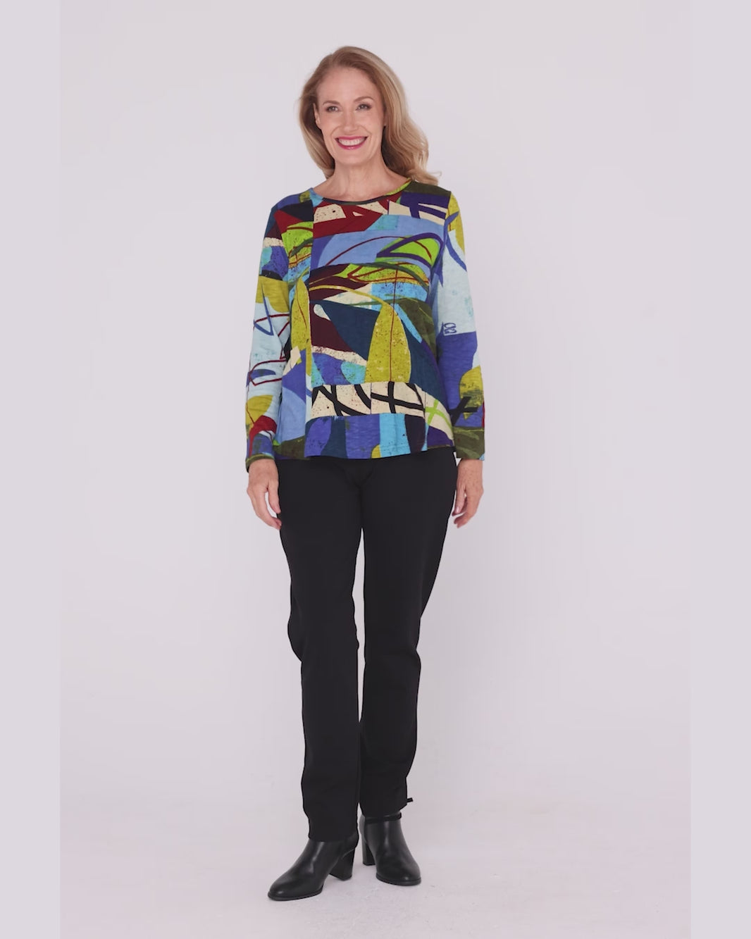 Camden Long Sleeve Knit Top - Purple/Green Print