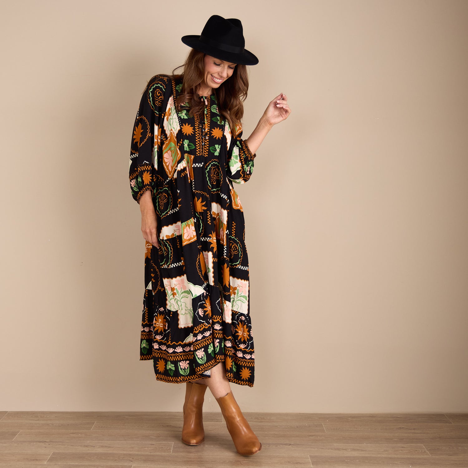 I read that you need to go up a size if you are fairly big in the bust line. Glad I did. Don't be alarmed if you need to press the fabric before you wear it. It comes up trumps after ironing after all its rayon. It makes me feel nice as its a great length for me as I am 5'4" . It is a great dress to hide the bumps in the belly area.