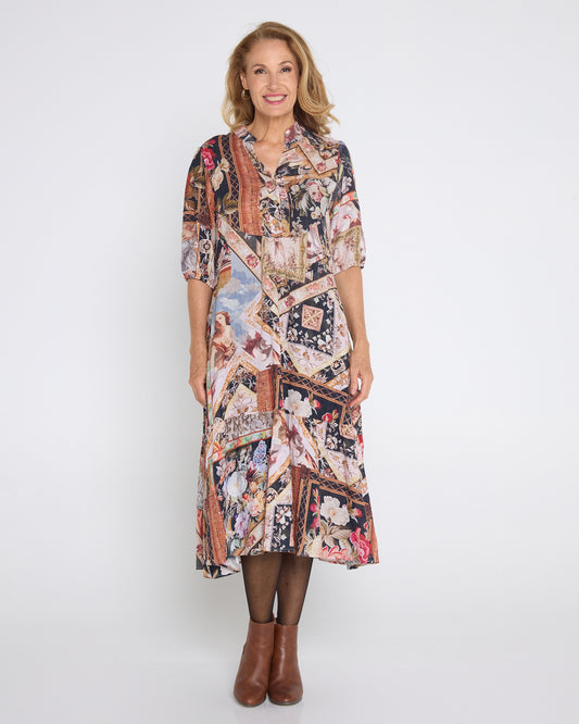 I read that you need to go up a size if you are fairly big in the bust line. Glad I did. Don't be alarmed if you need to press the fabric before you wear it. It comes up trumps after ironing after all its rayon. It makes me feel nice as its a great length for me as I am 5'4" . It is a great dress to hide the bumps in the belly area.