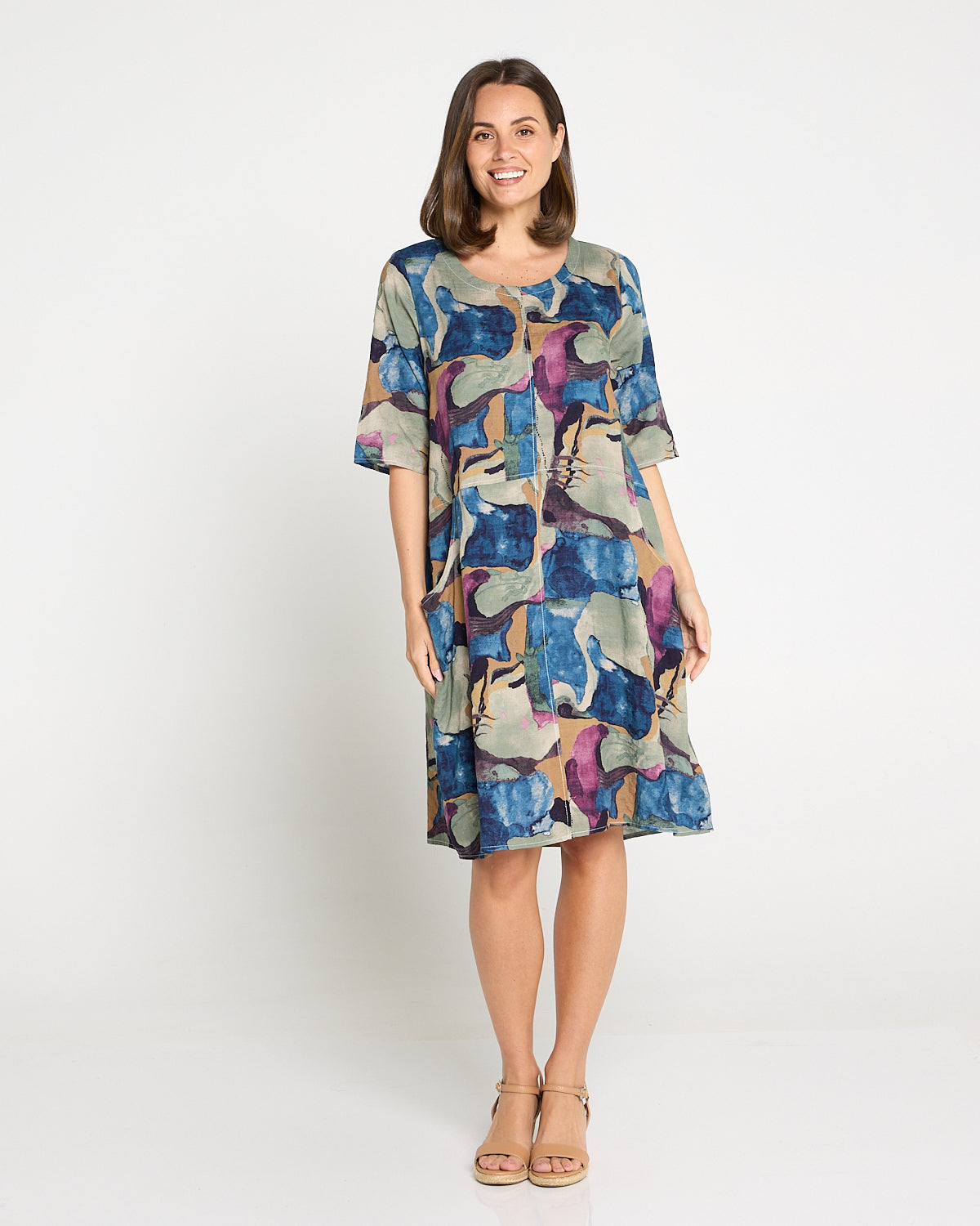 I read that you need to go up a size if you are fairly big in the bust line. Glad I did. Don't be alarmed if you need to press the fabric before you wear it. It comes up trumps after ironing after all its rayon. It makes me feel nice as its a great length for me as I am 5'4" . It is a great dress to hide the bumps in the belly area.