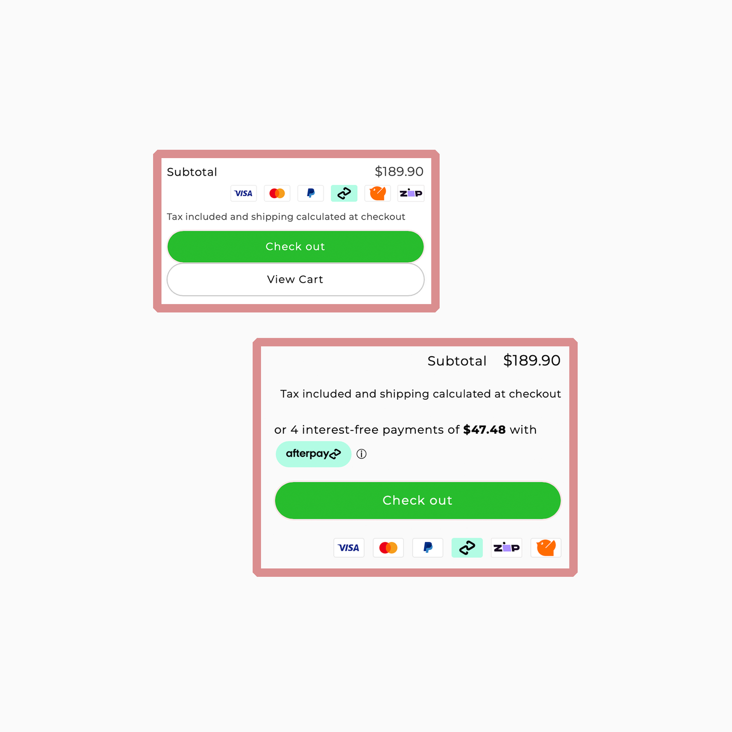 All of our available payment methods will also be available at the check out.