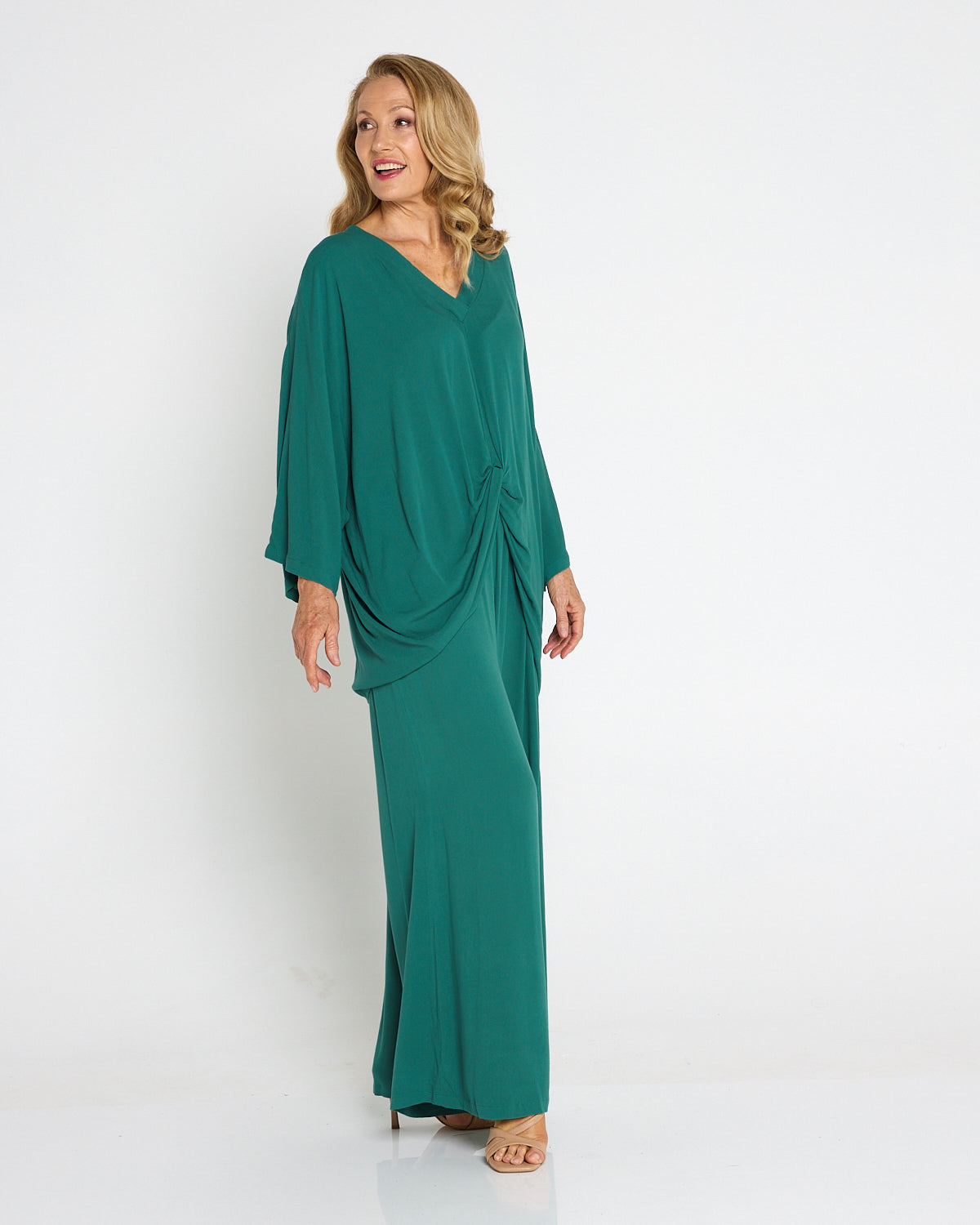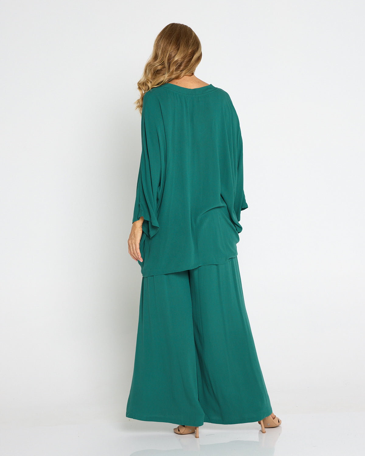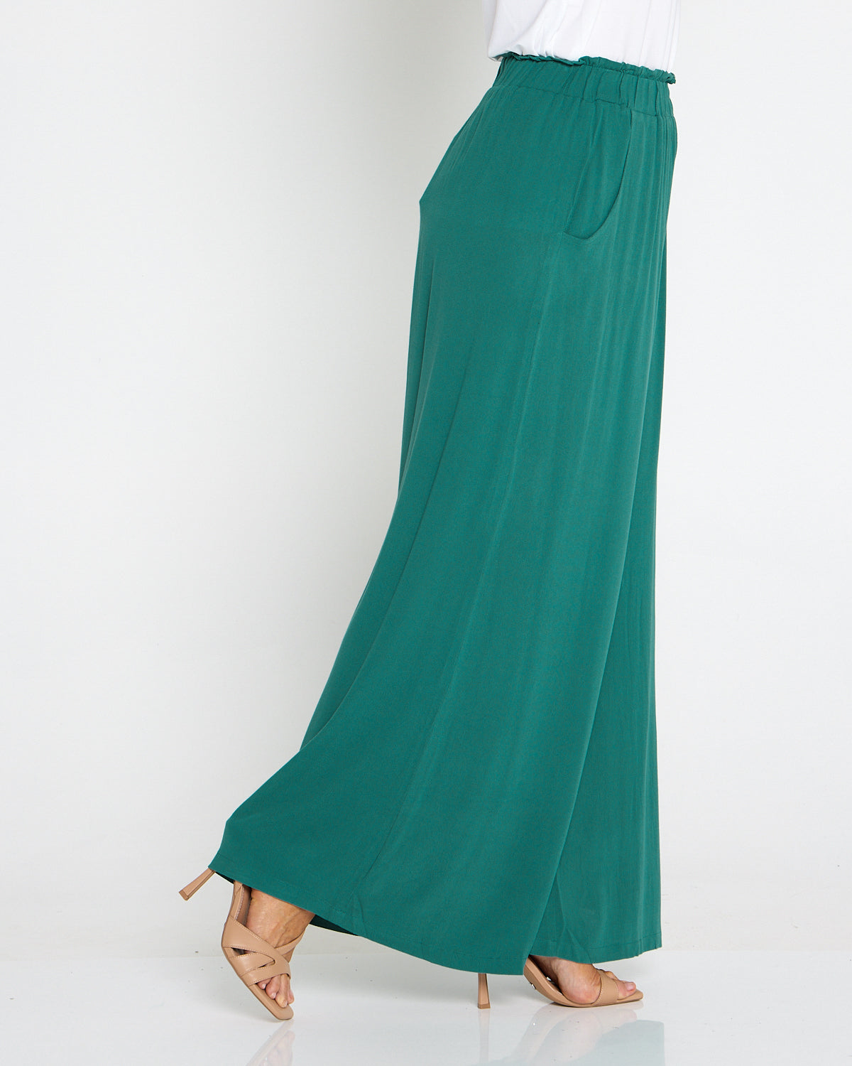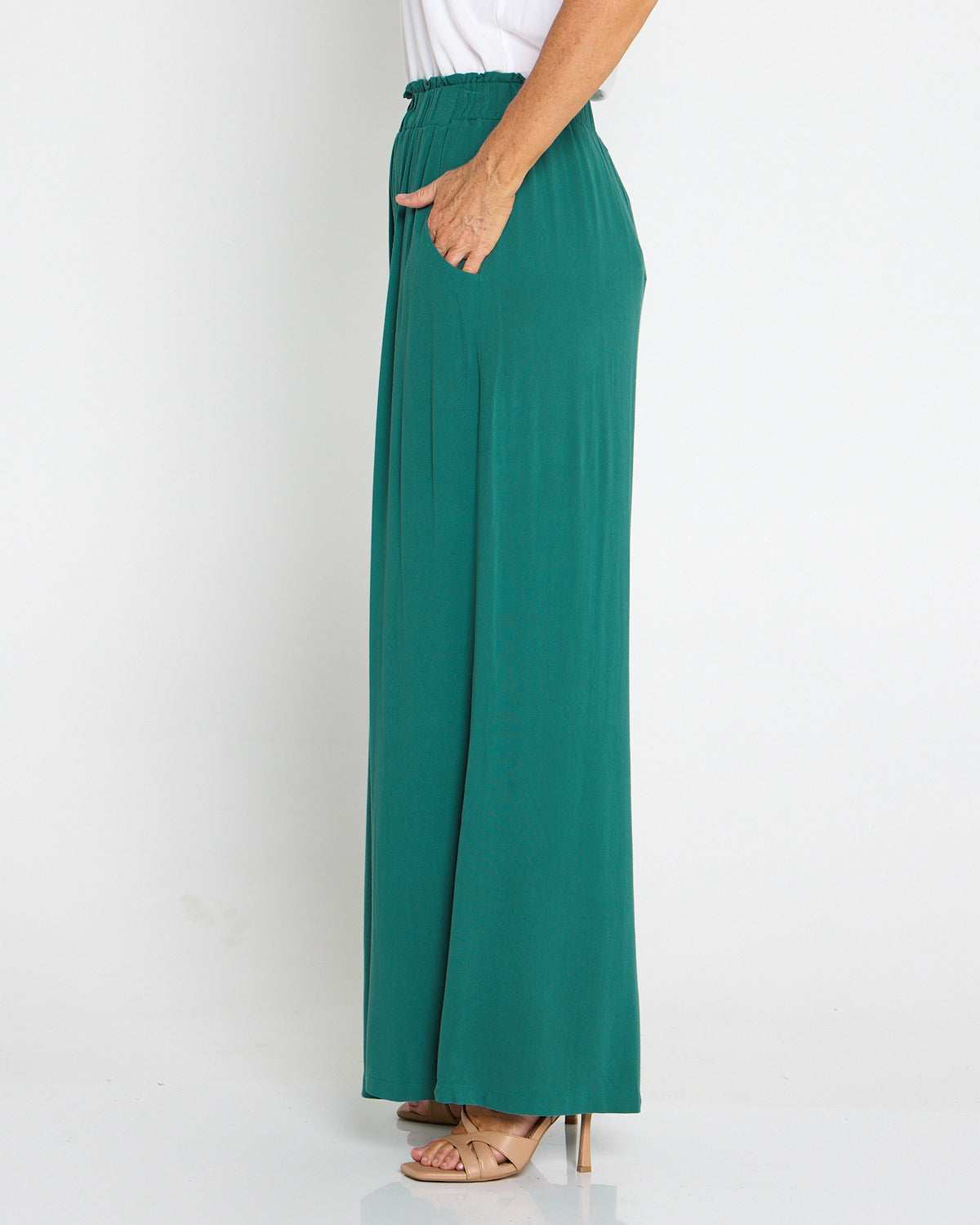 Elevate everyday comfort with the Alegria Palazzo Pant in rich Lagoon. Cut from softly draping viscose, this wide-leg style moves beautifully and skims the figure without cling. A flat front with elastic through the back makes for an easy pull-on fit, while side pockets add that practical touch we all love. Dress them up with a silky cami and wedges for dinner, or pair with the matching Alegria Twist Top and slides for chic resort style—from long lunches to holidays away.