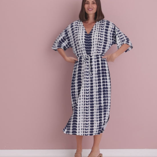 Sun-washed blocks of coral, bronze and blush give the Alayna Kaftan Dress its artful, wanderlust feel. Cut with a relaxed kaftan silhouette, it skims beautifully while an adjustable drawstring defines the waist for shape when you want it. A soft rayon lining adds coverage without weight, and the airy outer has a gentle texture that moves as you do. Slip on wedges and a basket bag for lunches, holidays or any warm-weather occasion where comfort and polish are a must.