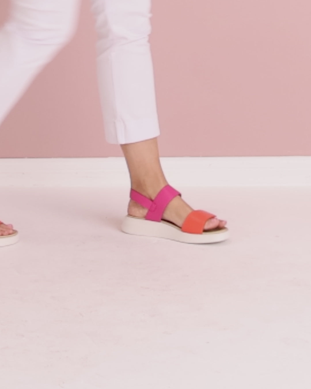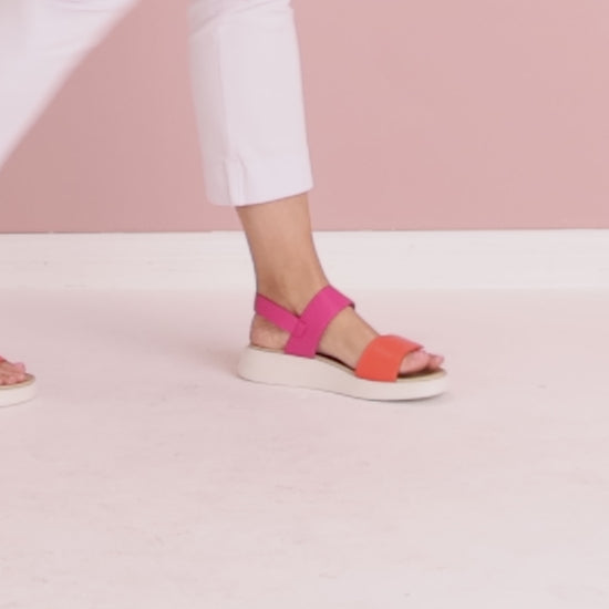 Add a pop of colour to your wardrobe with the Arica Sandals in Orange and Fuchsia. Designed with a supportive mid wedge heel, these slingback sandals give you effortless height without sacrificing comfort. Crafted from a premium manmade material that feels soft like leather, they’re a cruelty-free option that doesn’t compromise on style. The anatomically moulded footbed with arch support ensures a secure fit, while the bold colour combination makes every step a statement.
