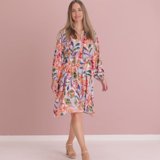 The Baja Relaxed Dress captures summer ease in a beautiful tide-blue print. Light and airy with a soft drape, this throw-on style floats gently over the figure with a relaxed silhouette that’s perfect for warm days. The V-neck and short sleeves balance the shape, while the knee-to-midi length keeps it versatile for beach strolls, brunch or holiday wandering.