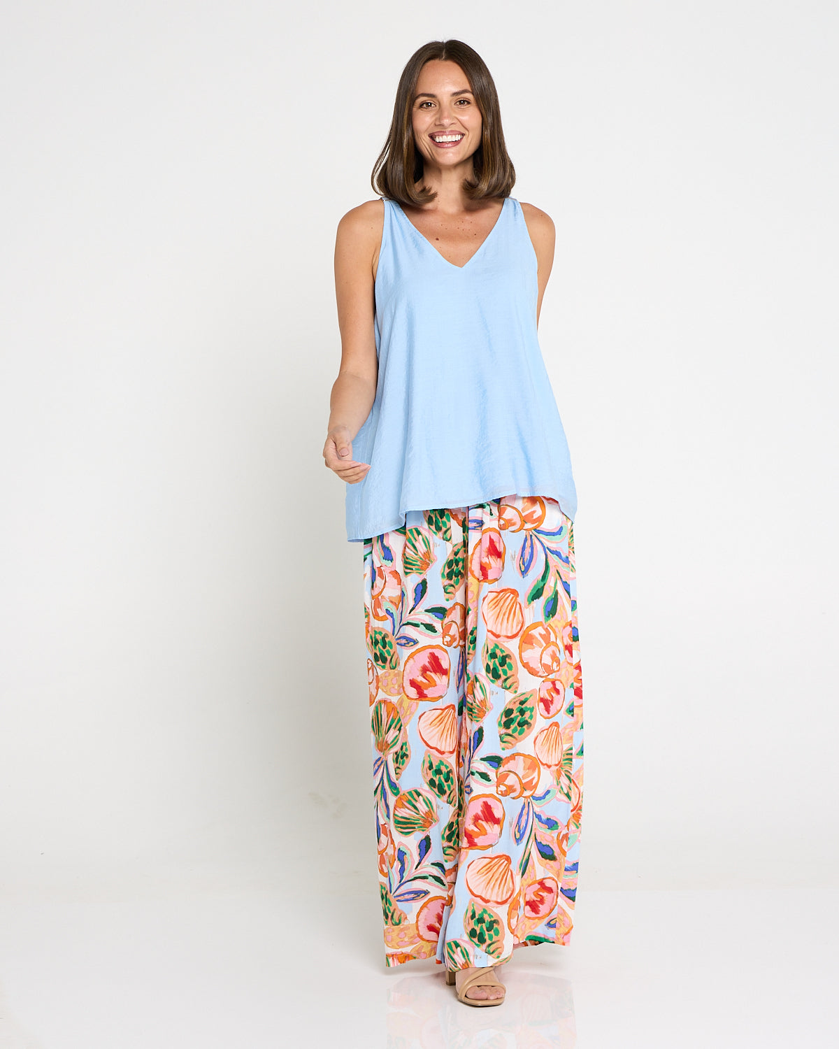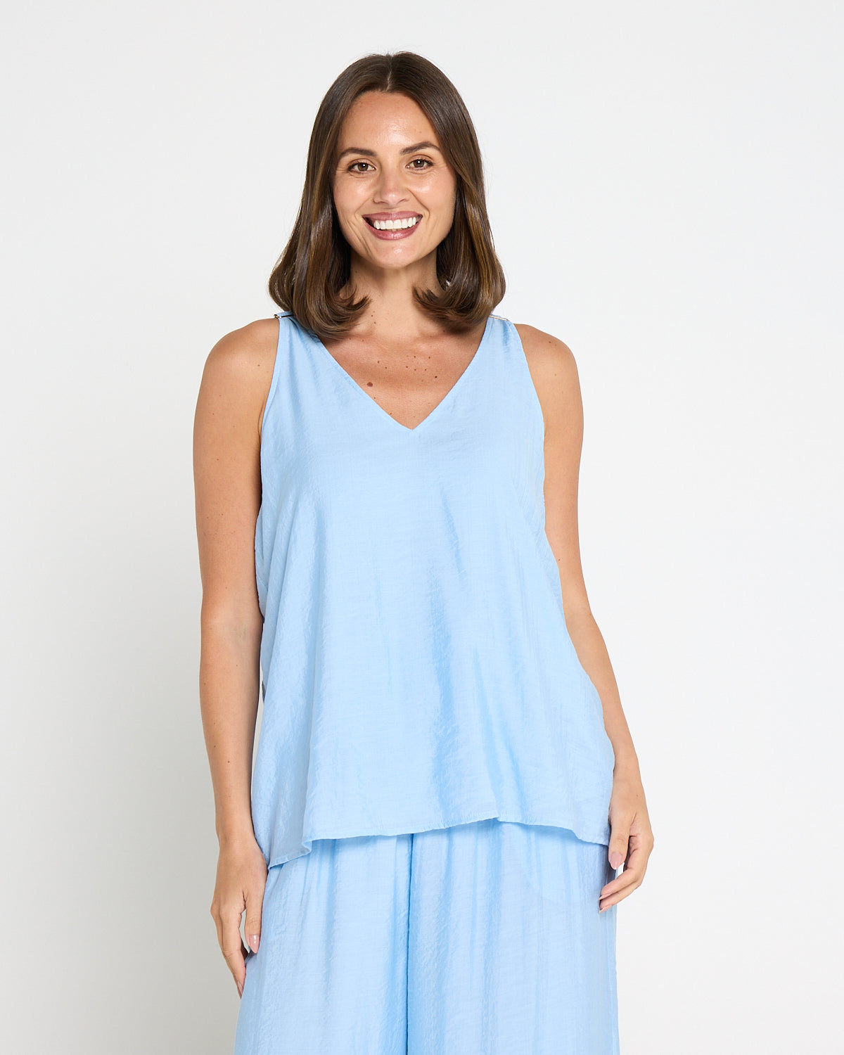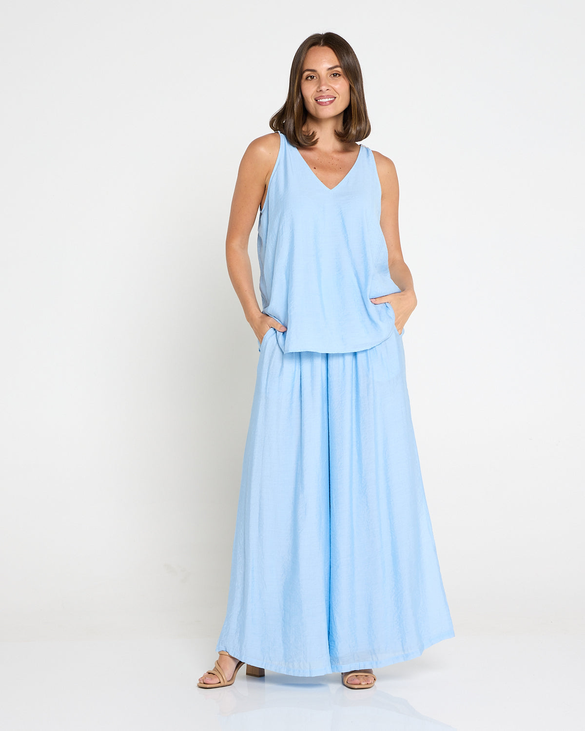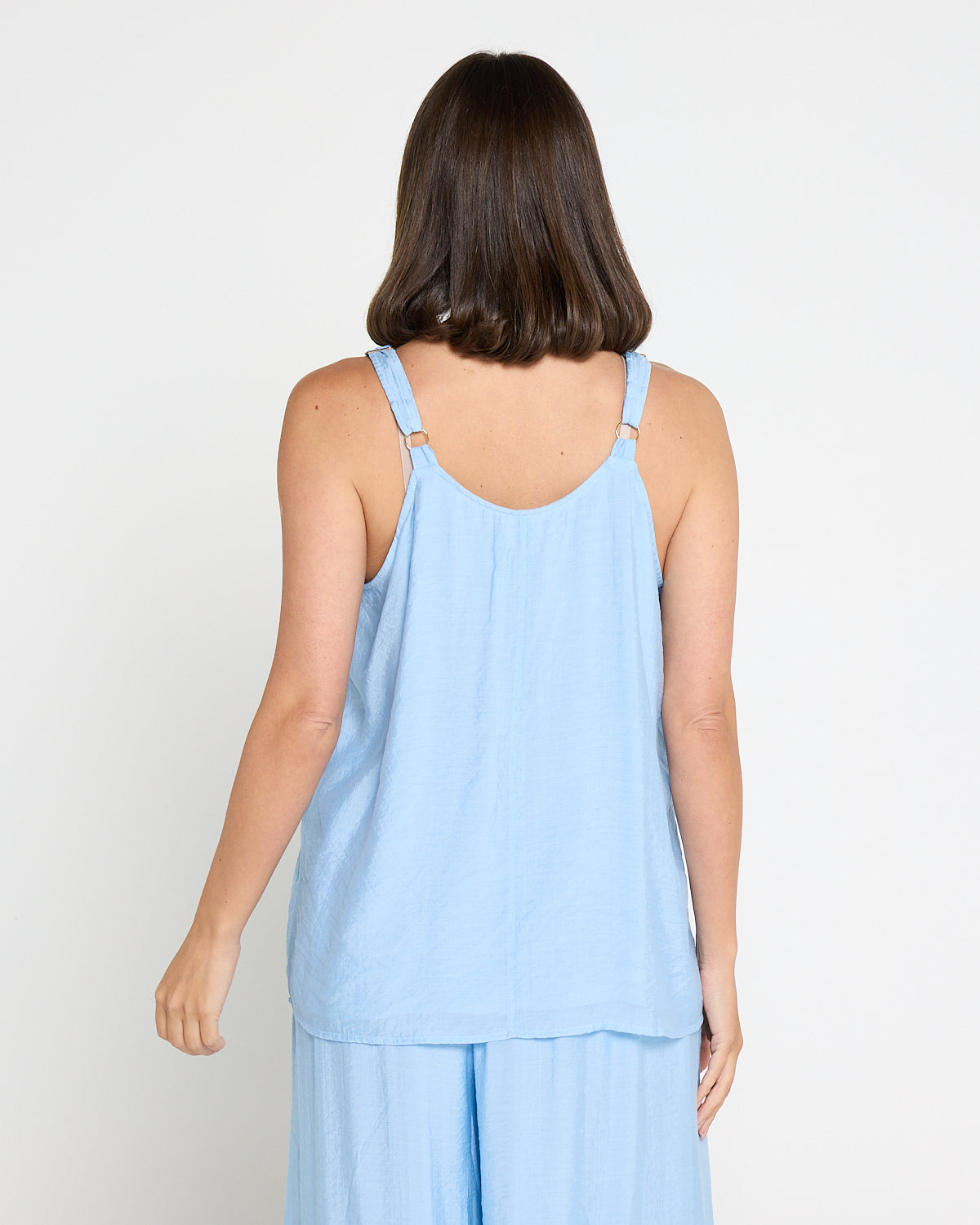 Bring a soft glow to sunny days with the Baja Tank in Safira. This modern staple skims beautifully with a gentle swing shape that never clings, while the V neckline and adjustable straps frame the shoulders with ease. The subtly lustrous weave gives a hint of polish, and the smooth full lining keeps it opaque and comfortable. Pair with the matching pants for an effortless set, or team with white denim and slides for relaxed lunches and holiday strolls.