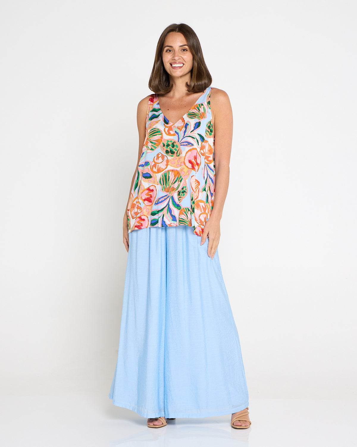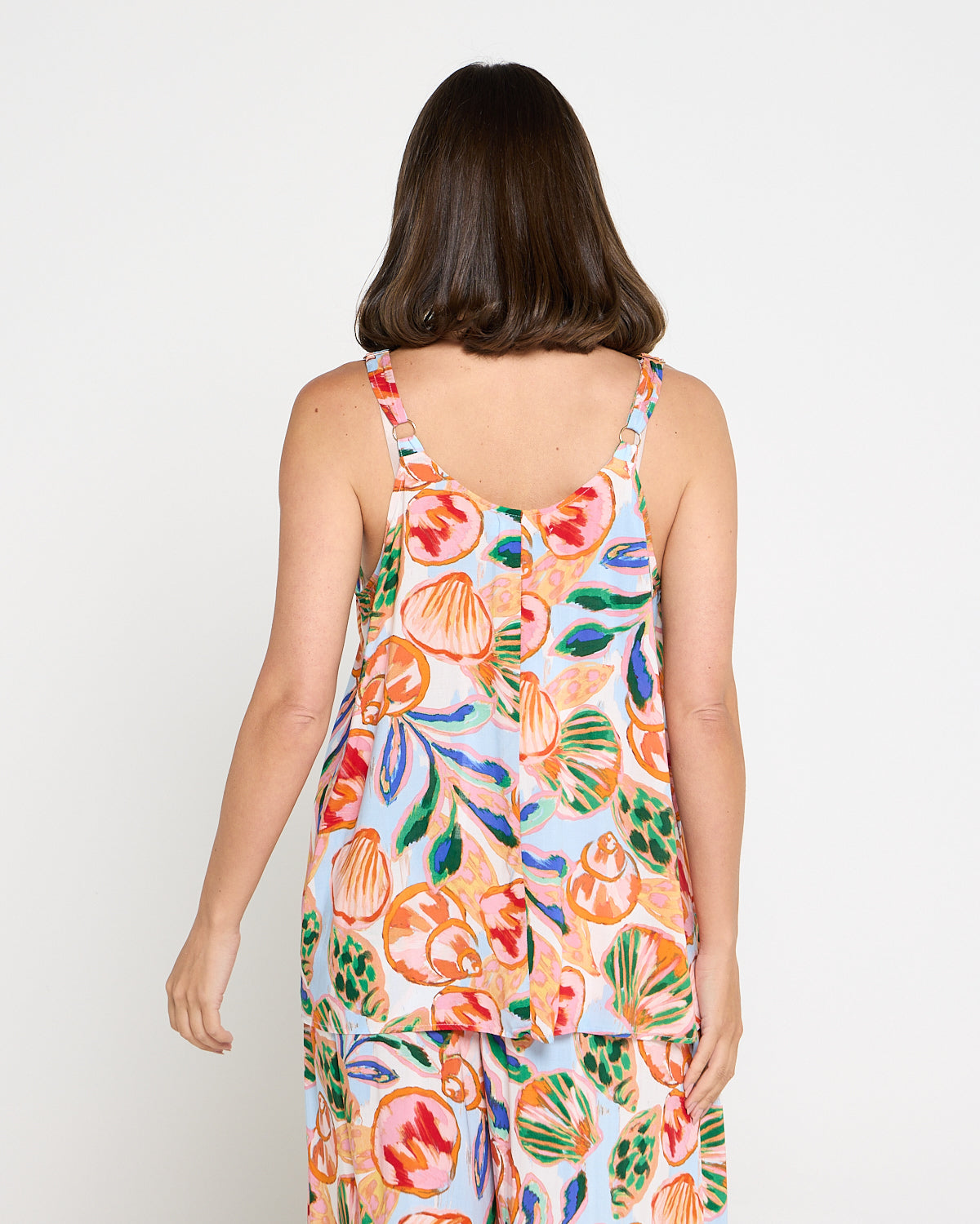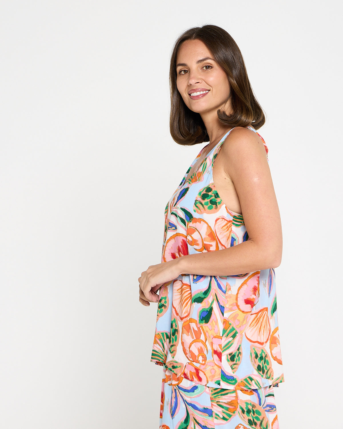 Bring a splash of coastal colour to sunny days with the Baja Tank in Tide. The painterly seashell print feels fresh and joyful, while the softly shaped V neckline and swing silhouette skim the body without clinging—perfect for relaxed lunches, holidays and easy weekend style. The adjustable shoulder straps are wider than the average spaghetti strap, to offer coverage for regular bras. The lightweight rayon is ultra soft and smooth, and drapes beautifully. Pair with white denim or the matching Baja Pants for an effortless set.