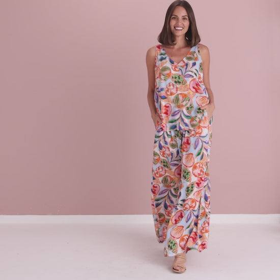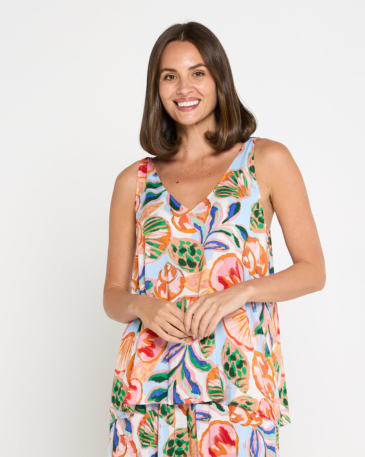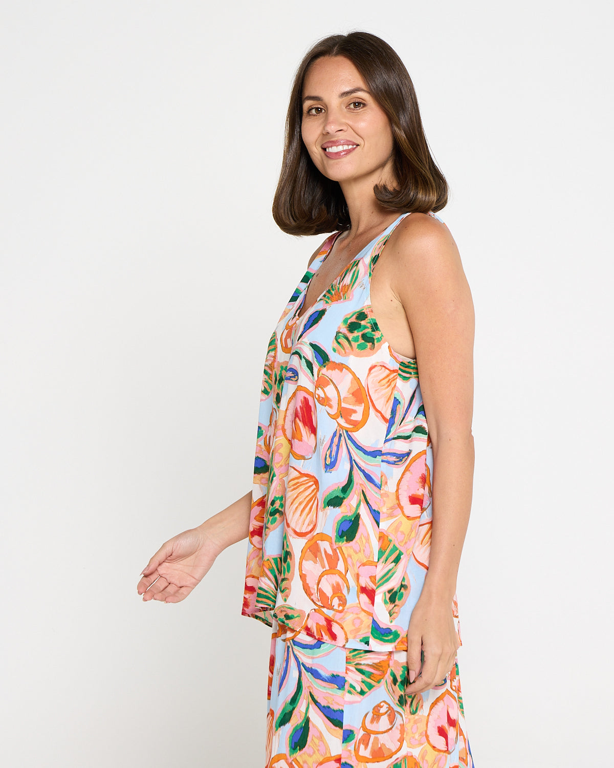Bring a splash of coastal colour to sunny days with the Baja Tank in Tide. The painterly seashell print feels fresh and joyful, while the softly shaped V neckline and swing silhouette skim the body without clinging—perfect for relaxed lunches, holidays and easy weekend style. The adjustable shoulder straps are wider than the average spaghetti strap, to offer coverage for regular bras. The lightweight rayon is ultra soft and smooth, and drapes beautifully. Pair with white denim or the matching Baja Pants for an effortless set.