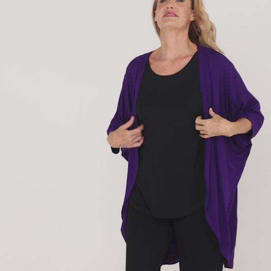 If you love layering without the bulk, this Bamboo Cocoon Cardigan by Whispers is one of those versatile pieces you’ll reach for again and again. Crafted in a beautifully draping bamboo-rich jersey, it falls softly through the body in a relaxed cocoon shape that flatters without clinging. The rich eggplant tone adds depth and warmth to your wardrobe, pairing effortlessly with black, navy or neutral basics.