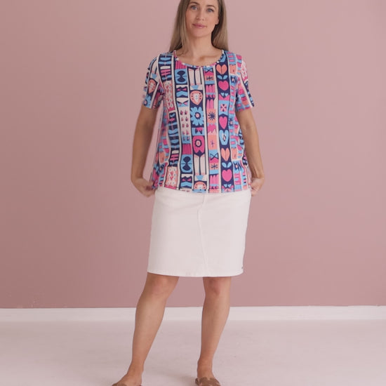 A fresh take on a wardrobe classic, the Belle Skirt by Elm pairs clean lines with comfortable stretch. Cut in medium-weight denim that holds its shape, this everyday piece sits neatly at the waist and skims the hips without clinging. The straight silhouette finishes around the knee for easy wear with tees, shirts or a lightweight knit. Add sandals now and sneakers later—this is the white denim skirt you’ll reach for on repeat, from school runs to weekend brunch.