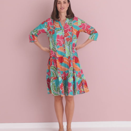 Beth Pleated Drop Waist Dress - Tropical Waratah