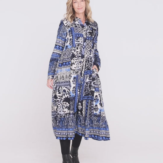 The button-through front and collar give it a polished feel, while the softly gathered waist seam adds shape without clinging. Finished with a flowing maxi length, gentle ruffle hem and handy pockets, it’s an easy choice for everyday wear or relaxed outings.