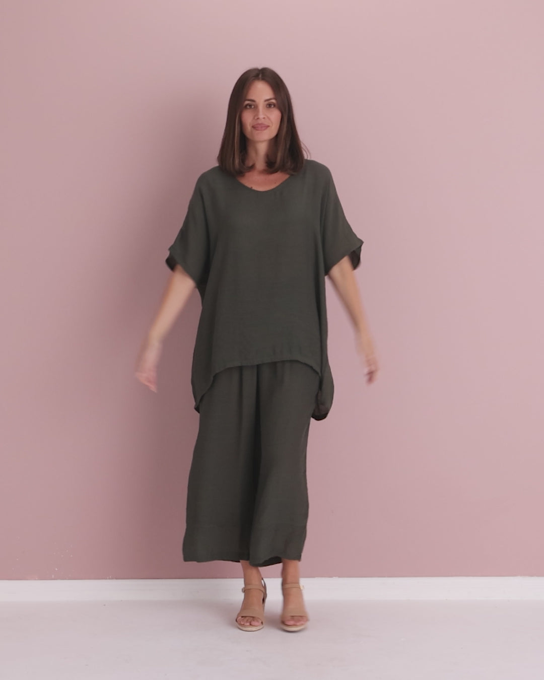 Relaxed, effortless and endlessly wearable, the Bonnie Pants are designed for comfort-first dressing with a polished finish. The wide-leg silhouette falls softly through the leg, creating beautiful movement while still feeling easy and unfussy. Crafted from a lightweight textured weave, they drape loosely to the ankle for a relaxed yet put-together look. The rich cypress green shade is surprisingly versatile, working just as well with crisp whites and neutrals as it does with prints and soft pastels. Finished with a broad elasticised waistband and practical pockets, these are the kind of pants you’ll reach for on repeat - from everyday errands to holiday styling.