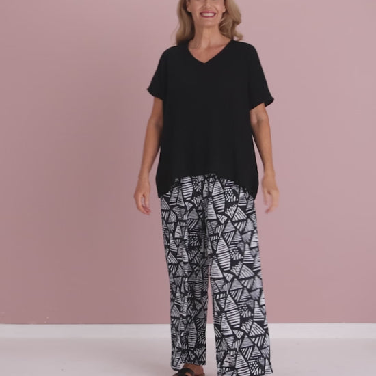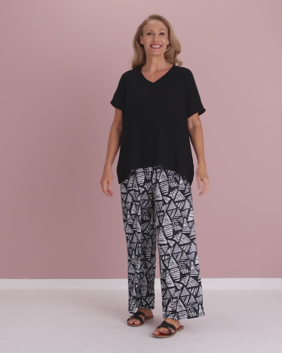 Meet your new summer staple. The Maldives Cotton Muslin Top in sleek black will keep you cool and comfortable. Cut in our easy, slightly less-oversized shape this season, it skims the body without clinging and falls gracefully with longer sides for a flattering drape. The airy cotton muslin feels soft and breathable on warm days, while the V neckline and relaxed kimono-style sleeves add effortless polish. Pair with white pants for brunch, linen shorts for holidays, or layer over swimmers on coastal getaways.