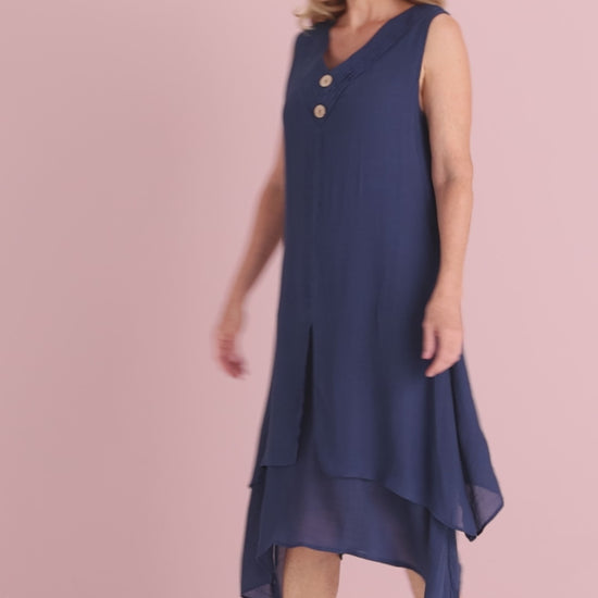 Capricorn Sleeveless Layered Dress - Navy