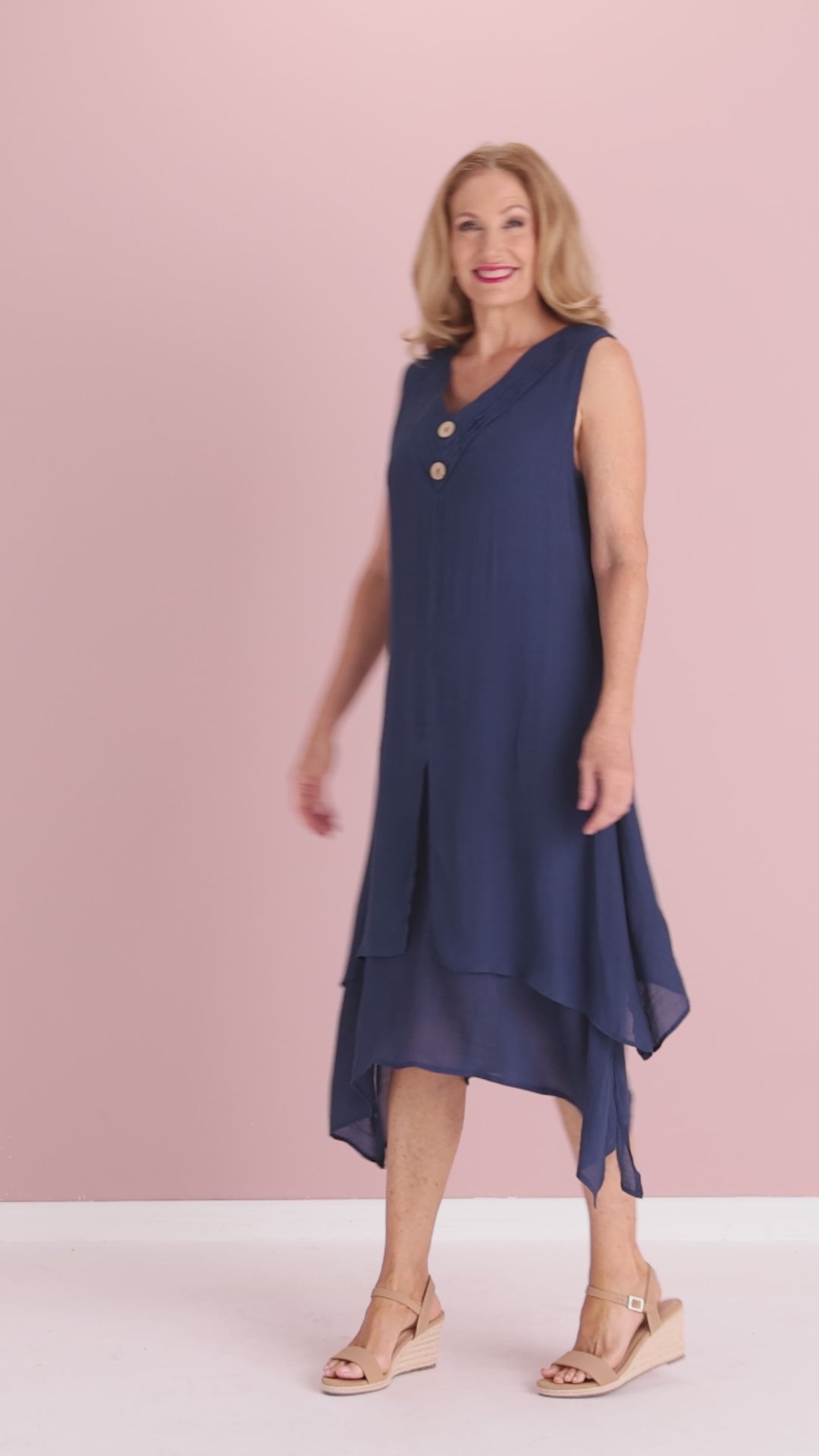 Elegant in its simplicity, the Capricorn Sleeveless Layered Dress is designed to move beautifully with the body while offering confident coverage. This refined style features a softly draped two-layer construction, with the underlayer acting as a full lining that falls longer than the top layer to create a subtle, flowing hemline. The rich green hue adds depth and warmth to the look, while the V neckline and sleeveless cut keep it modern and easy to wear. Finished with decorative button detailing at the neckline, this dress works effortlessly for daytime events, holidays or relaxed evenings - simply add wedges or sandals and let the layers do the work.