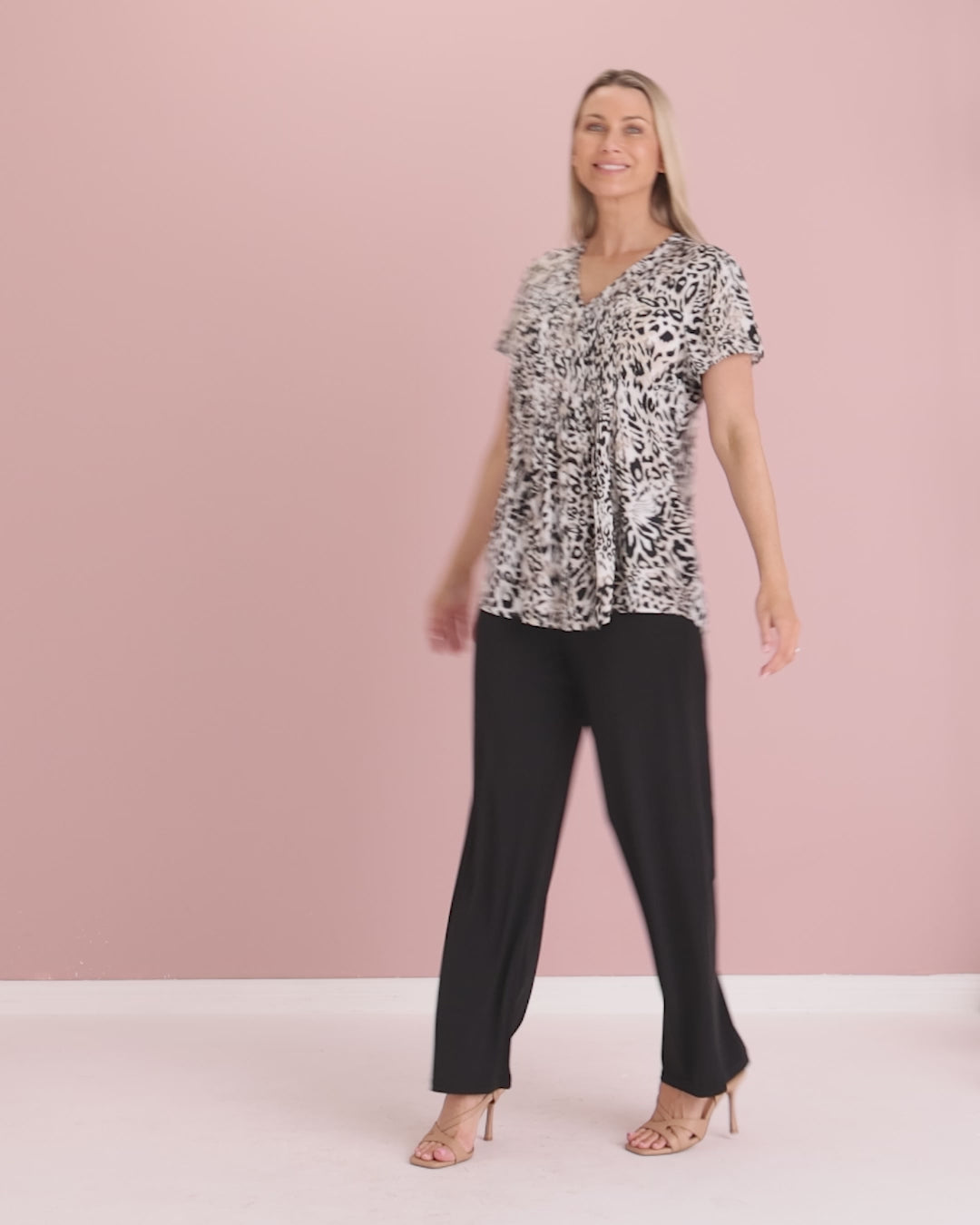 Bright, feminine and effortlessly flattering, the Chloe Pintuck Shirt now comes in a leopard print for a touch of the wild in your style. Crafted from a lightweight woven rayon, it skims the figure without clinging and falls beautifully thanks to fine pintucks that release soft movement through the body. The V neckline and button-through front make it easy to style—half-tuck into white pants for lunch, leave loose with denim for weekends, or pair with crops and sandals for warm days.