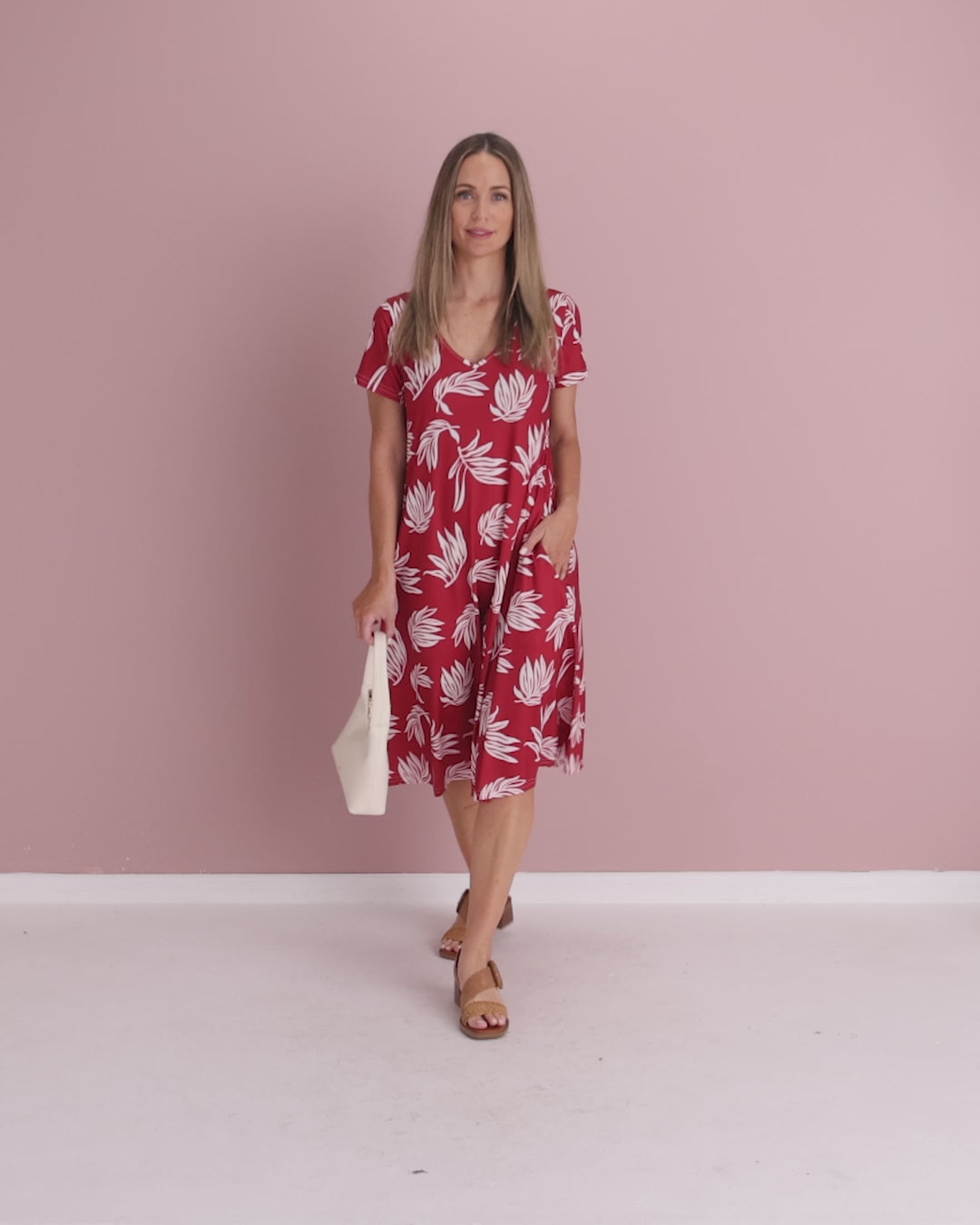 The vibrant floral print pairs beautifully with sandals or wedges, while the gently flared skirt and practical pockets make it a feel-good favourite you’ll reach for all season long.