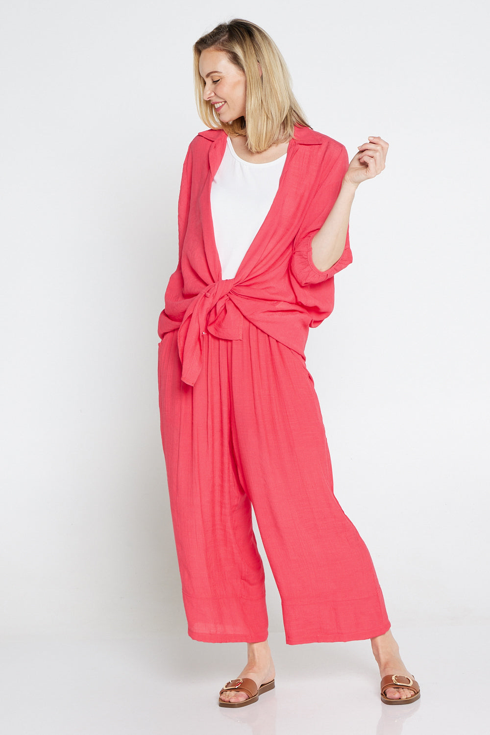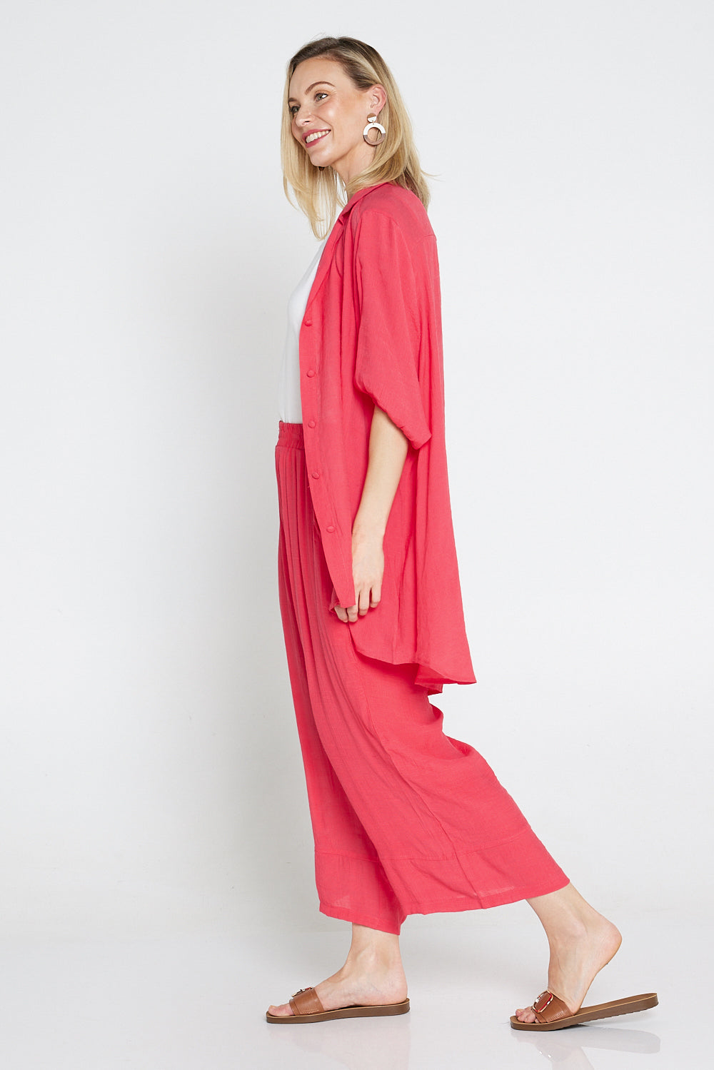 Now in bright and sassy Melon, the comfort shirt is such a handy basic. Whether you button it to show off its longline, tunic silhouette, or leave it open to create the perfect lightweight warm-weather jacket, you will be comfortable and stylish. Cut from a cotton-rich, textured fabric, this shirt drapes effortlessly over the body. A beautiful canvas for accessories, there's nowhere this cool, breezy design won't come in handy.