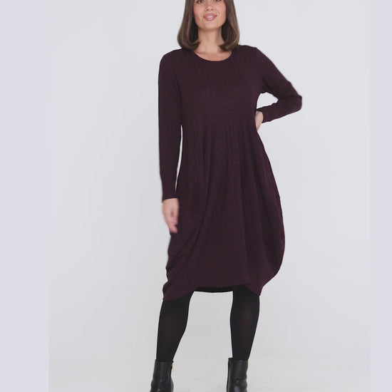 The Core Bounce Dress in Aubergine by Cordelia Street is a beautiful blend of comfort and creative design. Made from a stretch ribbed fabric, it gently skims the body while offering ease of movement, making it a lovely option for both day outings and relaxed evenings.