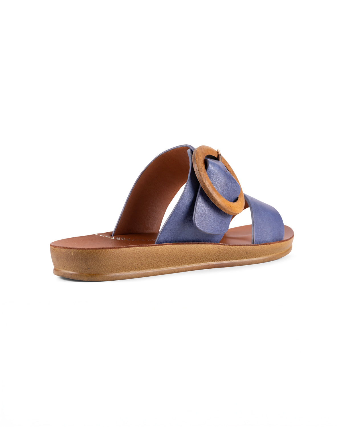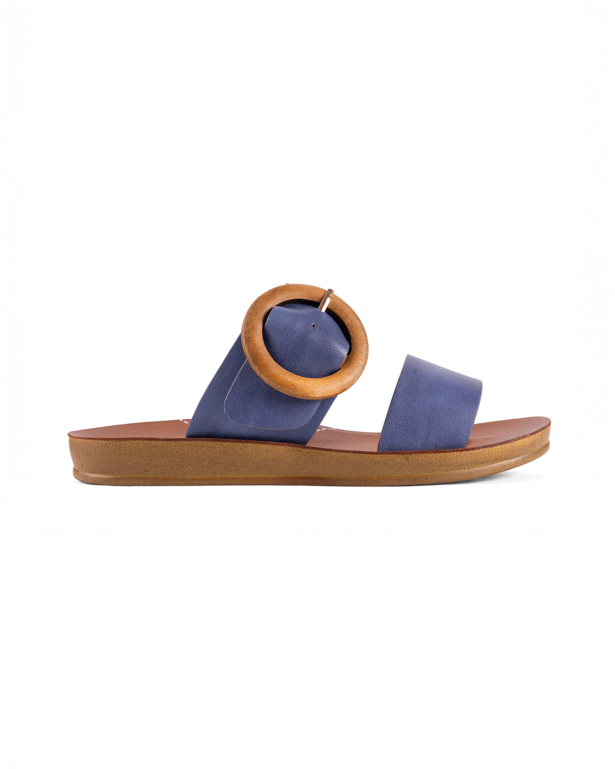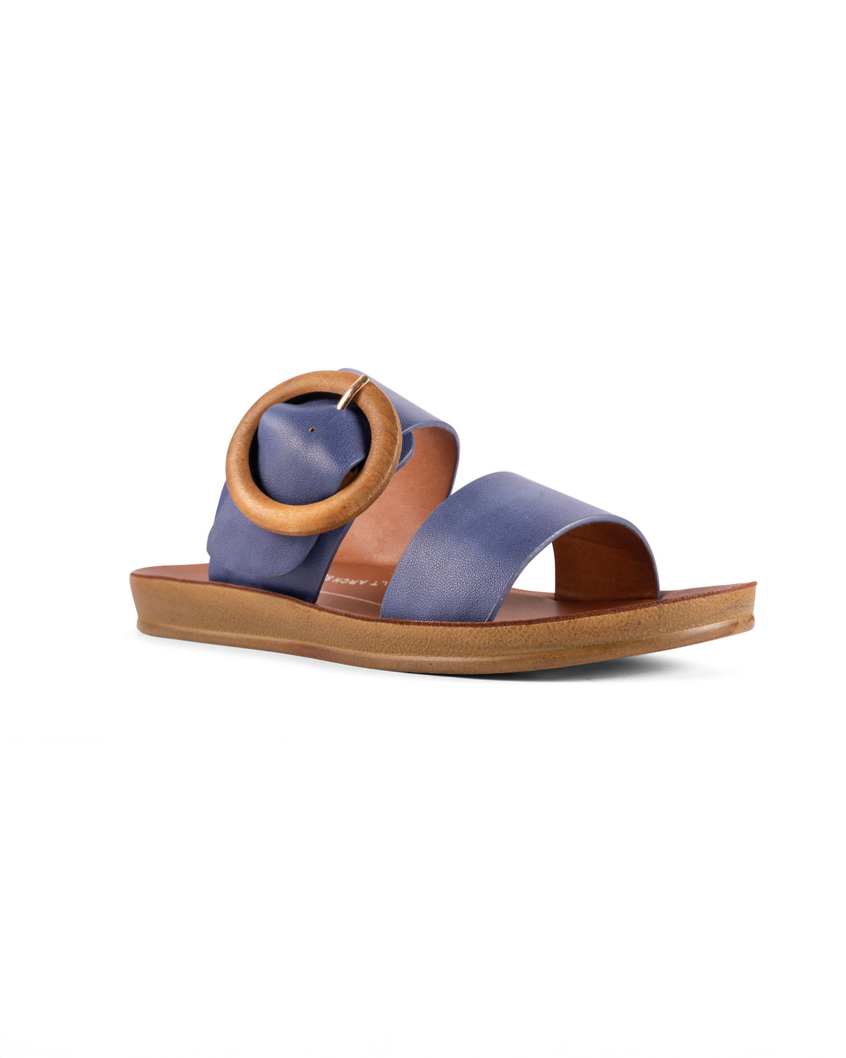 Bring a bold pop of colour to your summer wardrobe with the Damani Slide in Ocean by Los Cabos. This effortless slip-on pairs a striking blue finish with a signature oversized wooden buckle, blending laidback ease with elevated detail. Designed with a double-strap silhouette and built-in arch support, these slides deliver both comfort and style. Perfect for beach strolls, relaxed weekends, or adding a touch of fun to everyday outfits, they’ll be your go-to sandal all season.