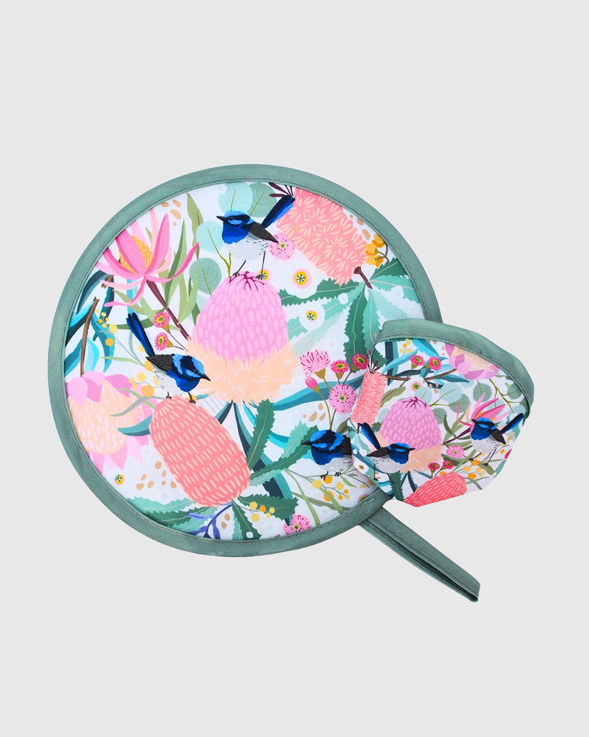 The stunning design features a gorgeous print of Australian flowers and charming blue wrens, making it both practical and pretty. It even comes with a matching pouch, so it stays neat and tidy until you need it next.