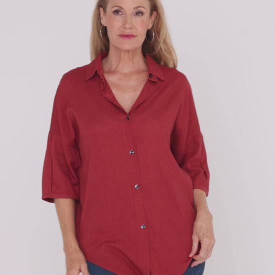 Soft, artistic and effortlessly wearable, the Elton Linen Shirt in Rust brings warmth and richness to everyday dressing. Crafted from a breathable linen blend with a natural woven texture, this shirt has a relaxed drape that feels polished yet easy. The earthy rust tone adds depth and flatters beautifully, making it a standout option for trans-seasonal styling. Thoughtful details like the softly pleated sleeves elevate the silhouette, while the classic button-front design keeps it endlessly versatile. Style it loose over white pants, half-tucked into denim, or layered under a lightweight jacket for an effortlessly put-together look.