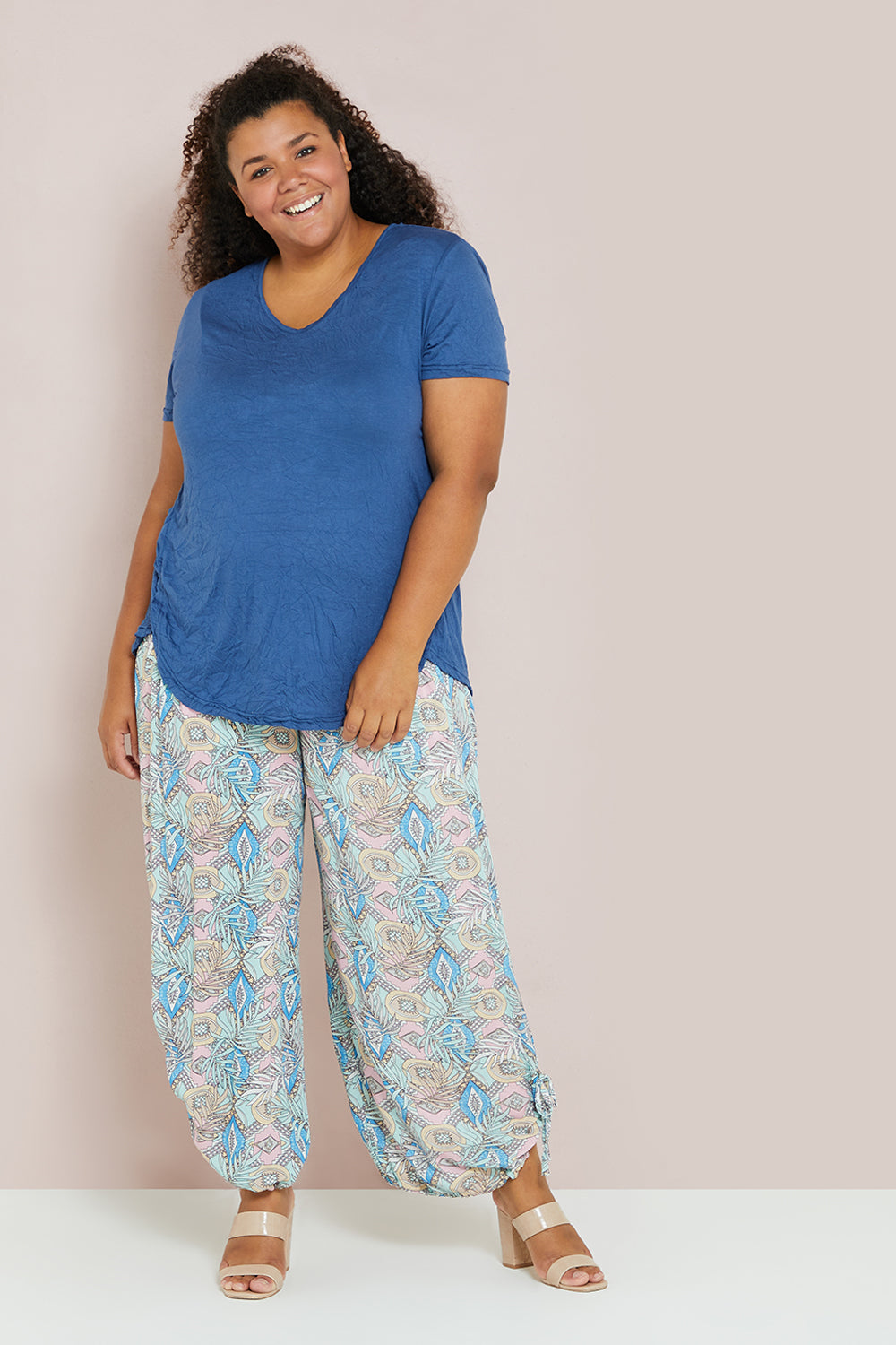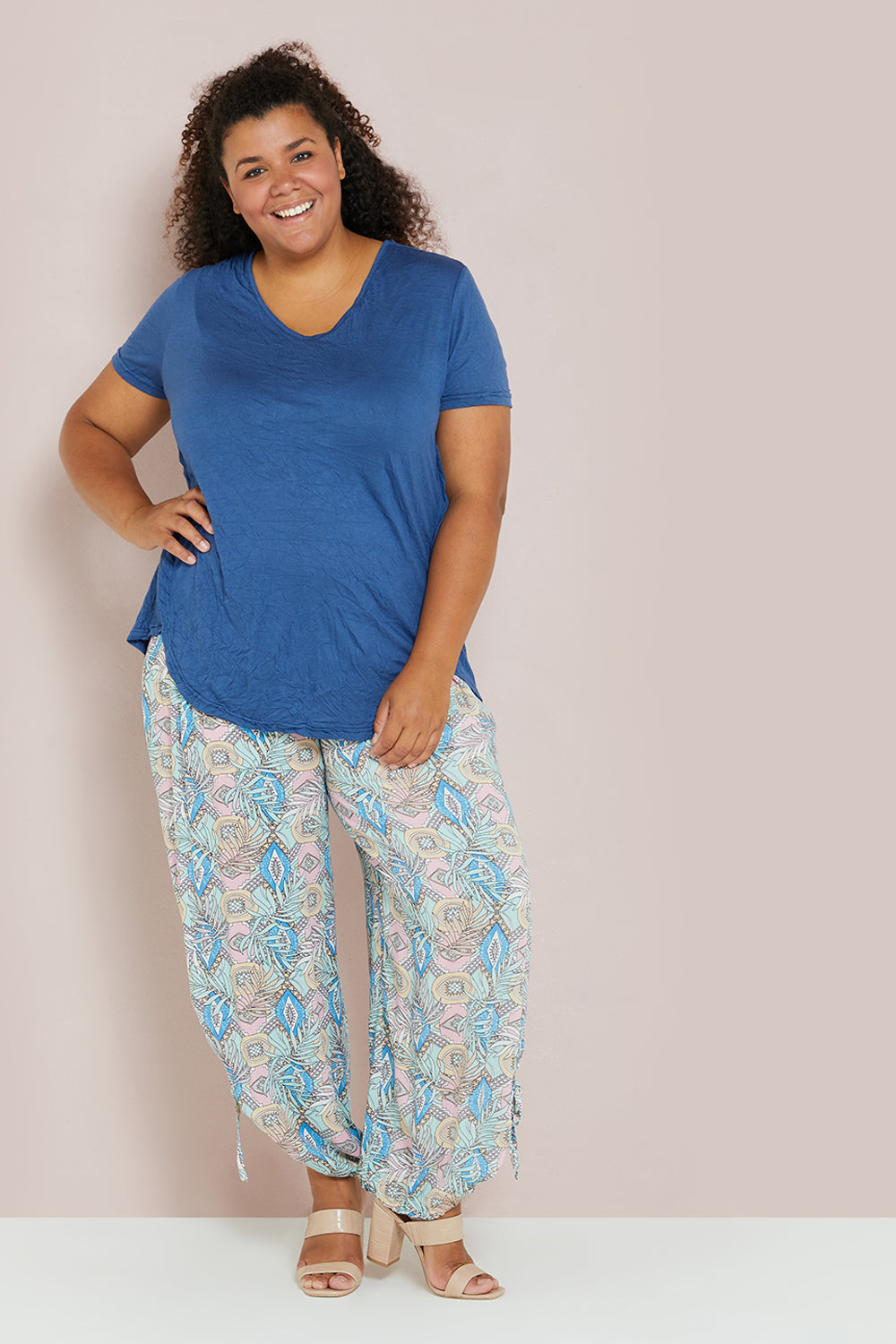 With a v neck, short sleeves and curved hem, the design is easy fitting and comfortable. The stretch cotton jersey is soft and low maintenance, you'll enjoy having this piece on hand for easily styled outfits.