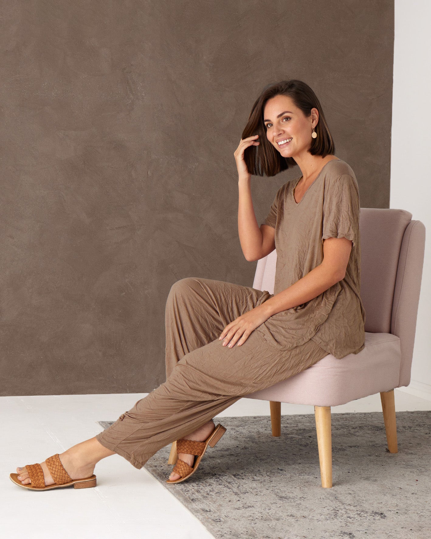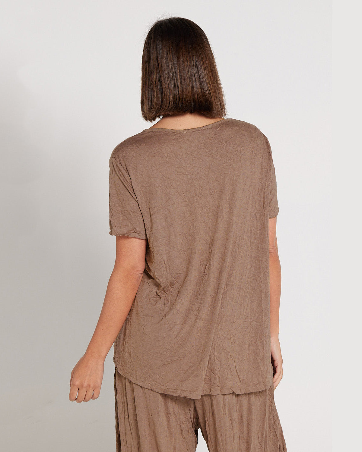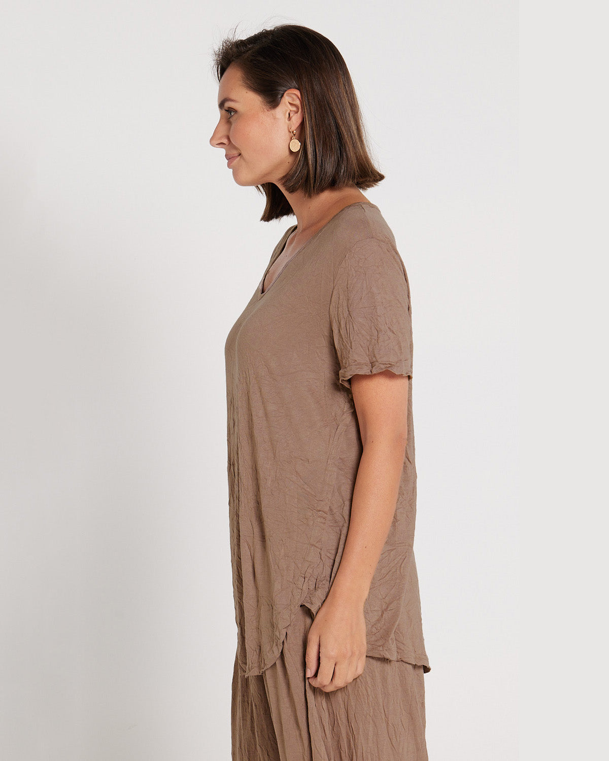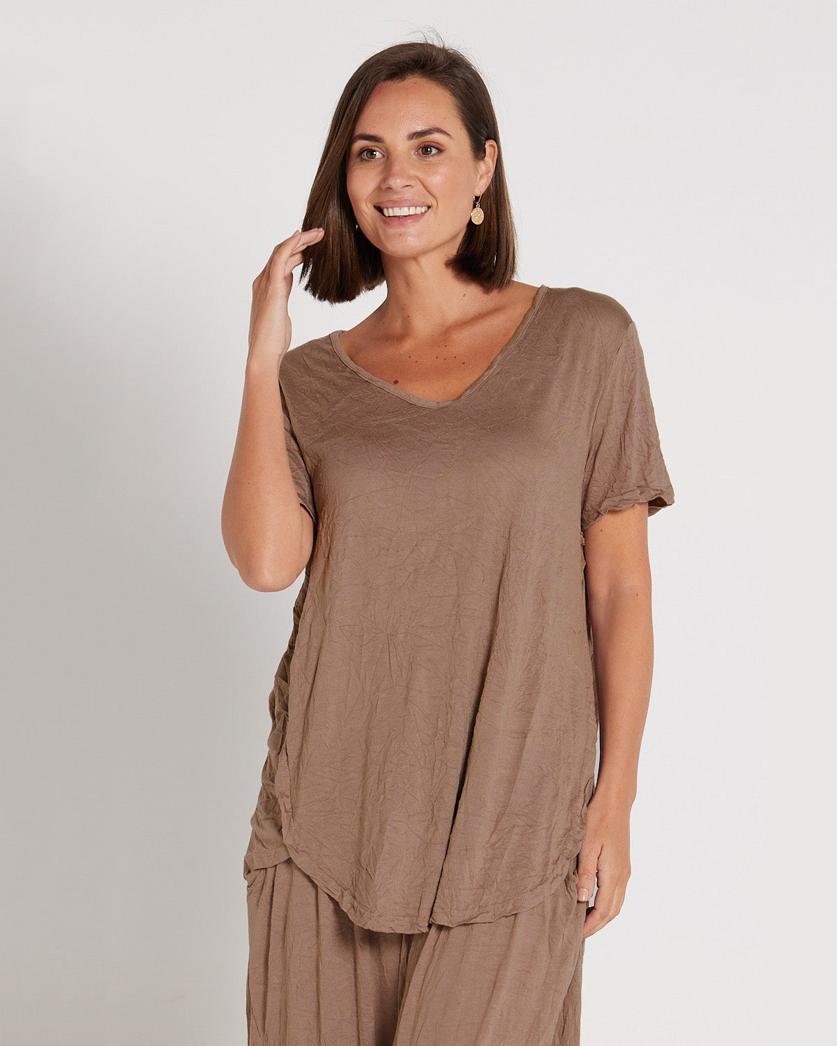 A staple style from Cotton Village, the Jackie Top is a lovely basic tee. Now in a beautiful shade of soft mocha brown. A truly beautiful versatile neutral for your collection.