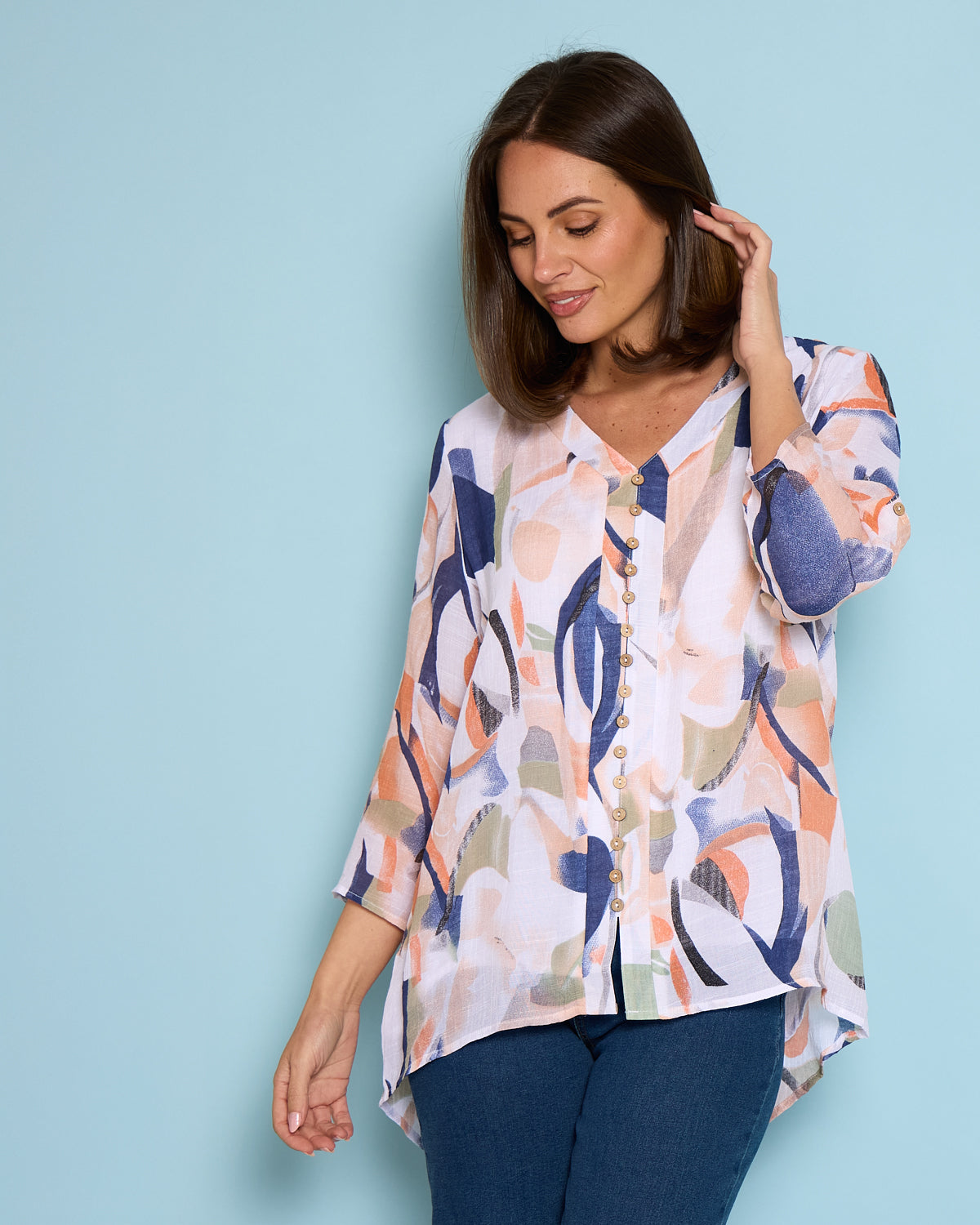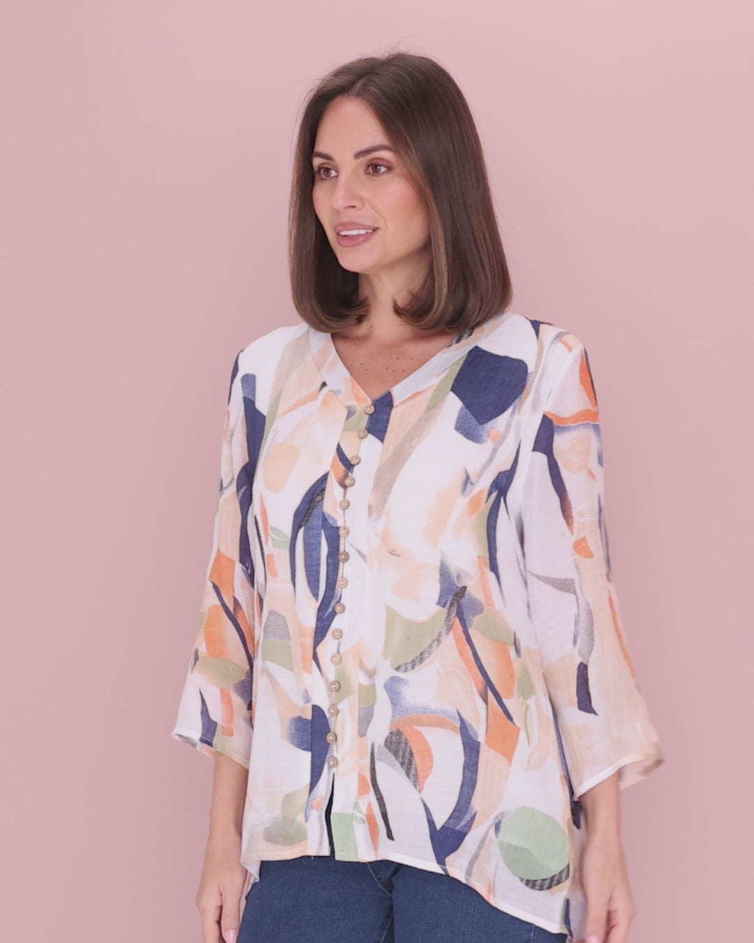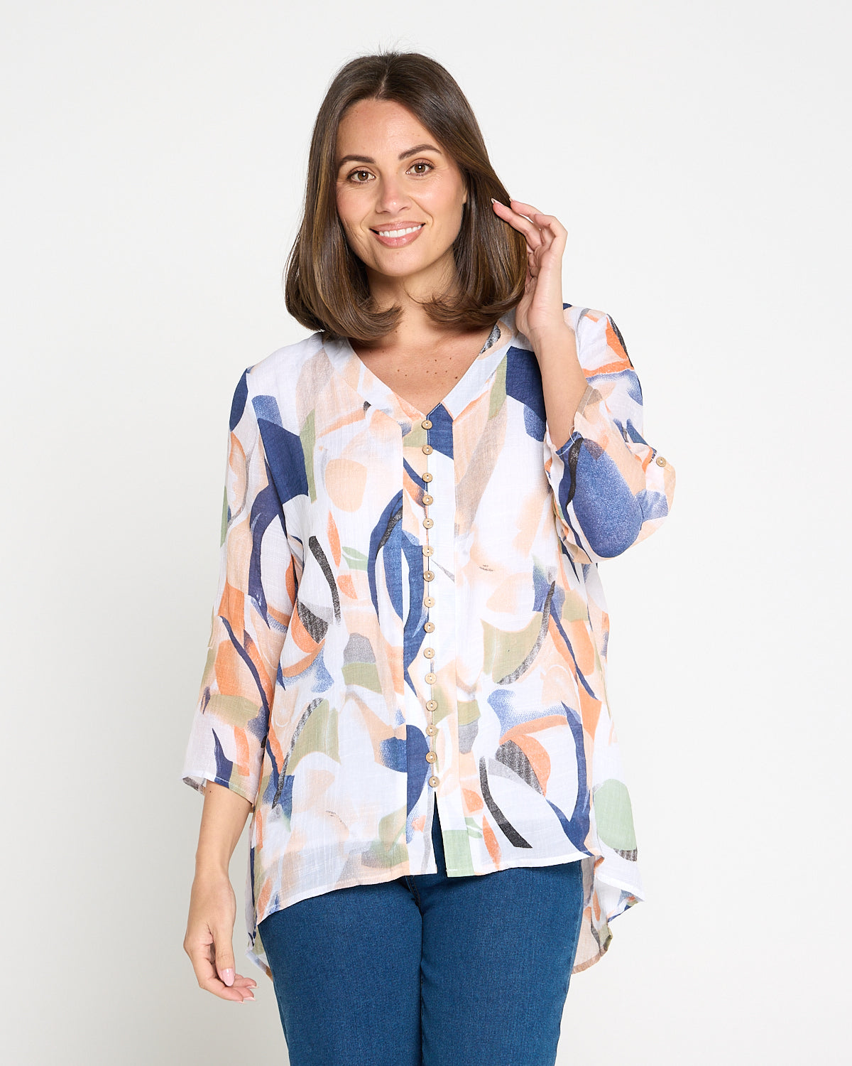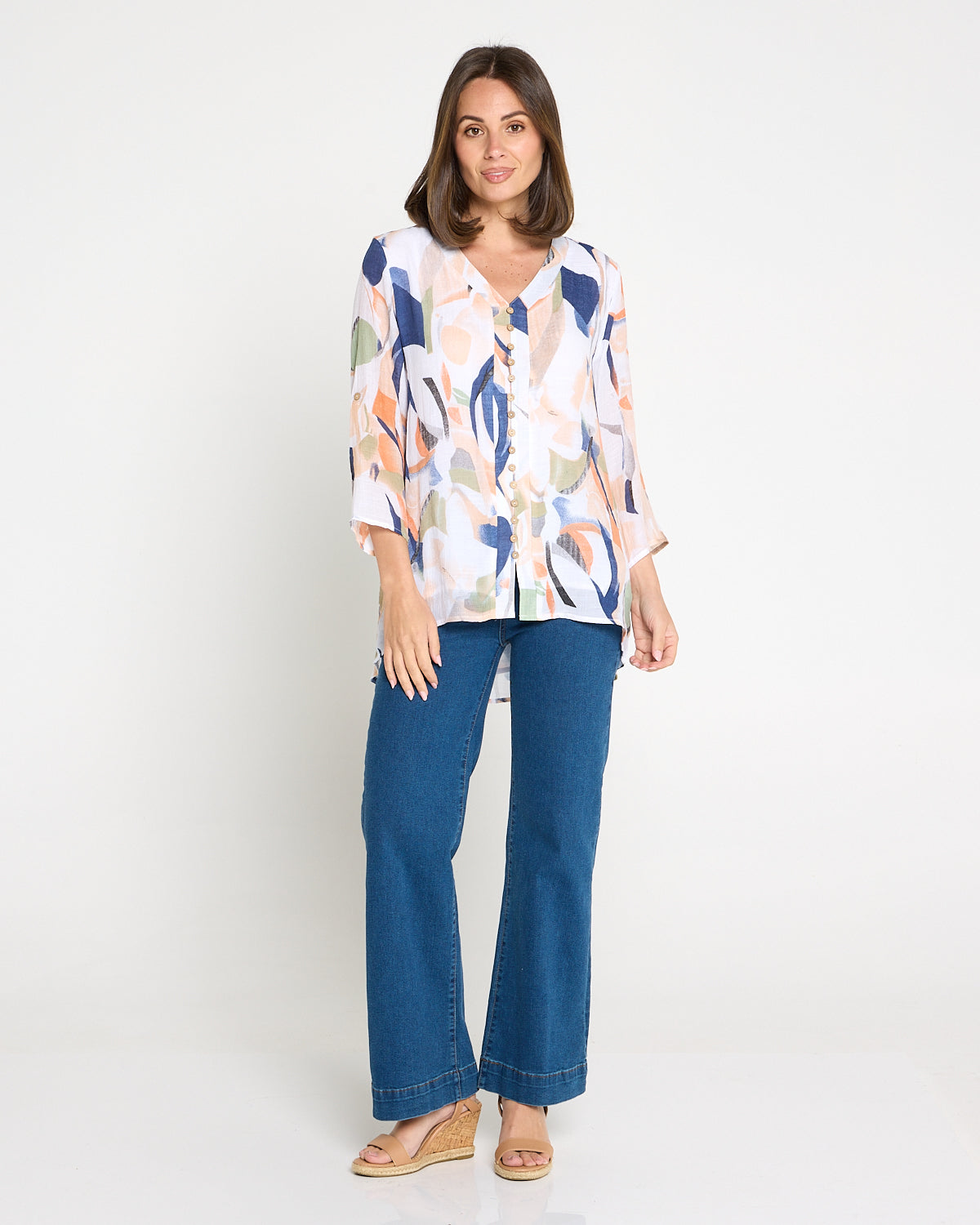 If you love our best-selling Gemma Top, the Jennifer is a new must-have addition to your wardrobe. Designed in the same spirit — relaxed, effortless, and versatile — this version is crafted by Renoma, with subtle design differences. The same flattering V neckline, textured woven fabric, and faux button front remain, but with Renoma's signature shaping and sizing. We recommend checking the size guide, as measurements may differ slightly from the original Gemma. Finished with coconut shell-style buttons and a double-layered front, this easy-wear style will take you from weekday errands to weekend catch-ups in comfort and style.
