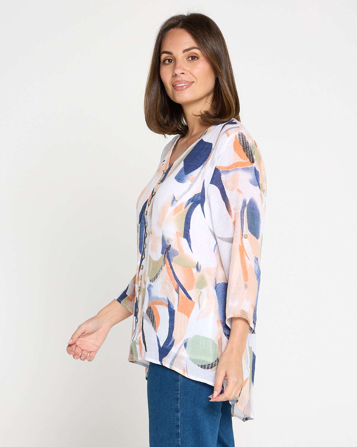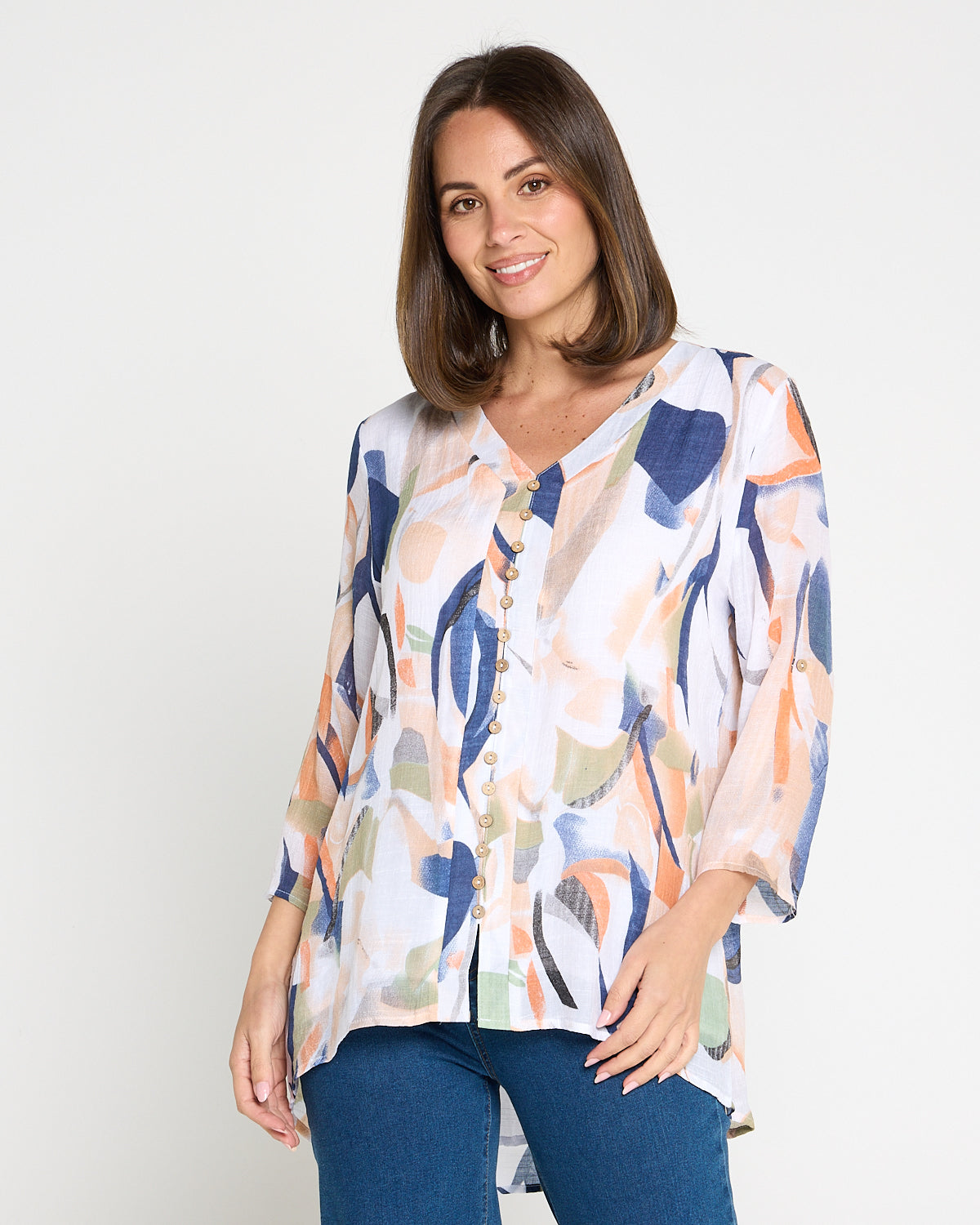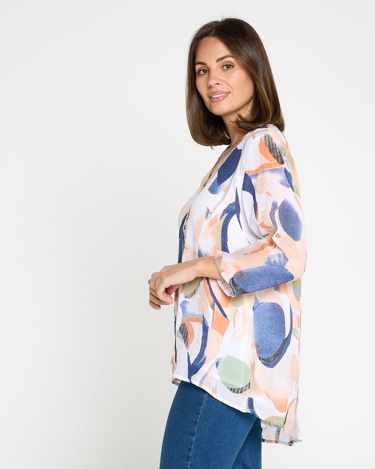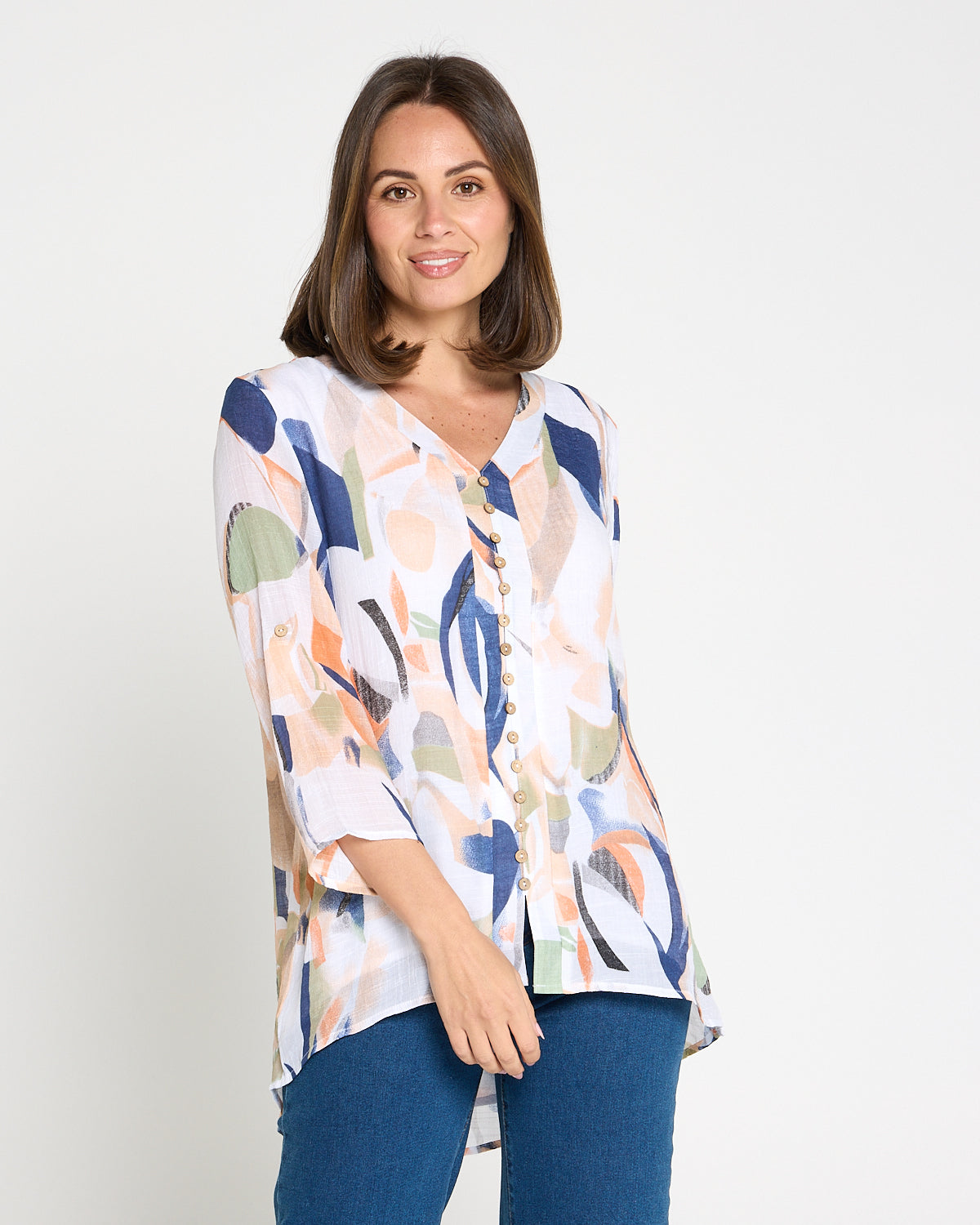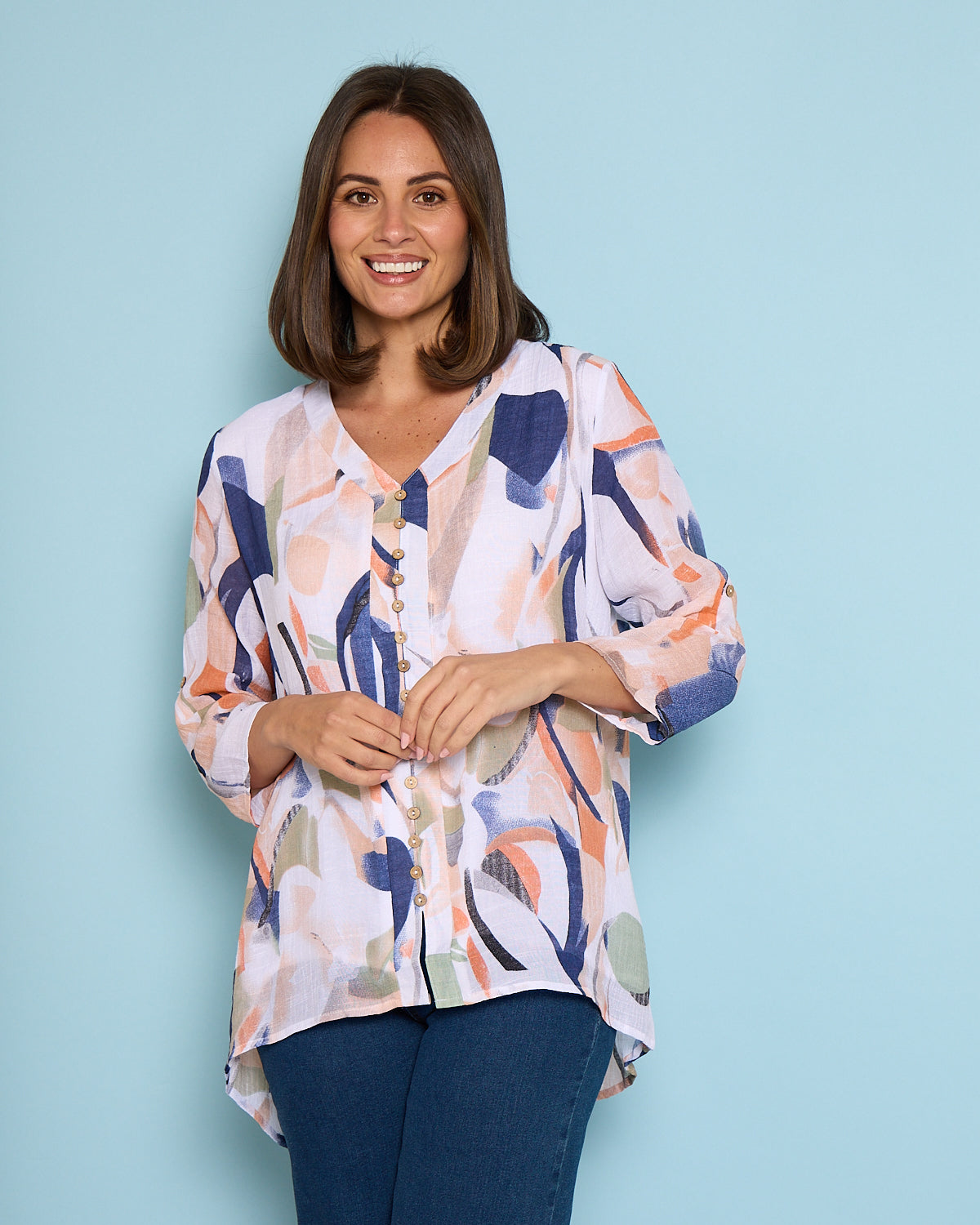 If you love our best-selling Gemma Top, the Jennifer is a new must-have addition to your wardrobe. Designed in the same spirit — relaxed, effortless, and versatile — this version is crafted by Renoma, with subtle design differences. The same flattering V neckline, textured woven fabric, and faux button front remain, but with Renoma's signature shaping and sizing. We recommend checking the size guide, as measurements may differ slightly from the original Gemma. Finished with coconut shell-style buttons and a double-layered front, this easy-wear style will take you from weekday errands to weekend catch-ups in comfort and style.