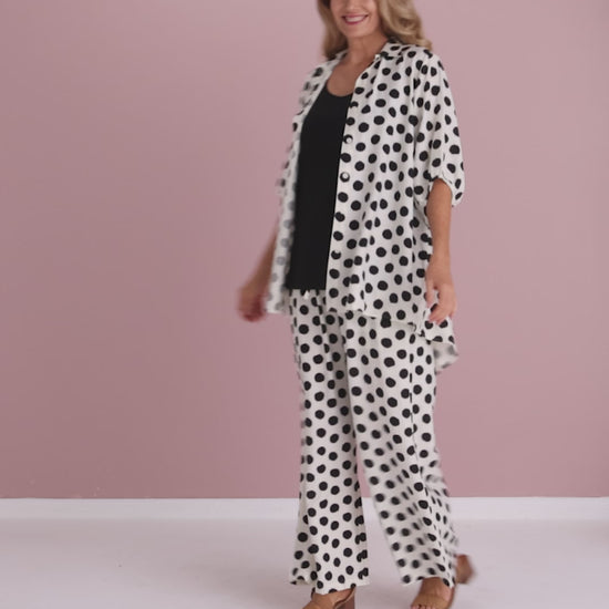 A long time essential from Cotton Village, the Comfort Shirt is such a handy style. Now available in an eye-catching spot print with contrasting ivory and black, this top instantly adds a statement to more understated outfits.