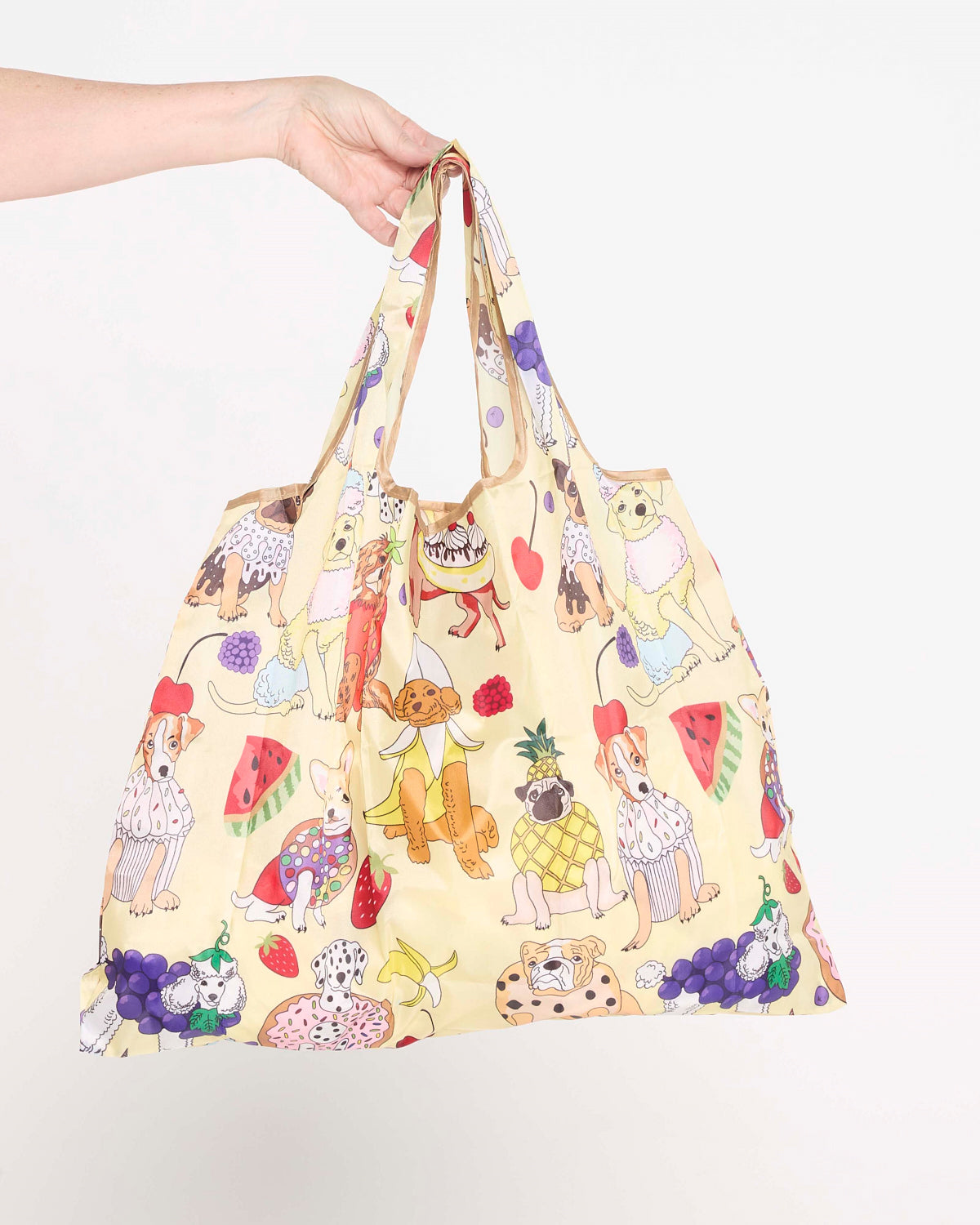 Get the fun started with the Puppy Party Bag! Bursting with colourful dogs dressed up as fruits, cupcakes, and sweet treats, this reusable shopping bag is as quirky as it is practical. From pineapples to strawberries, every pup brings a smile, making it the perfect bag for dog lovers with a sense of humour. Lightweight, foldable, and easy to stash in your handbag or car, it’s always ready for errands, markets, or a day out.