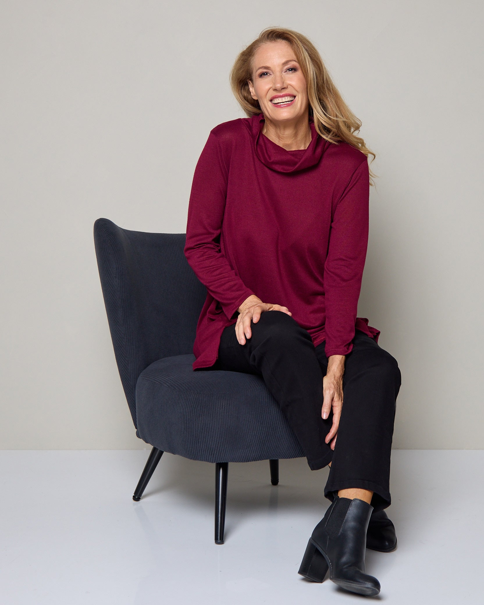 The Lina Cowl Knit Tunic is here in a beautiful Autumn Burgundy and is a must-have addition to your wardrobe. Stay cozy and stylish with its cowl neck, long sleeves, and relaxed fit. Keep your essentials close with convenient in seam pockets. Made with lightweight knit, this tunic is perfect for any occasion.