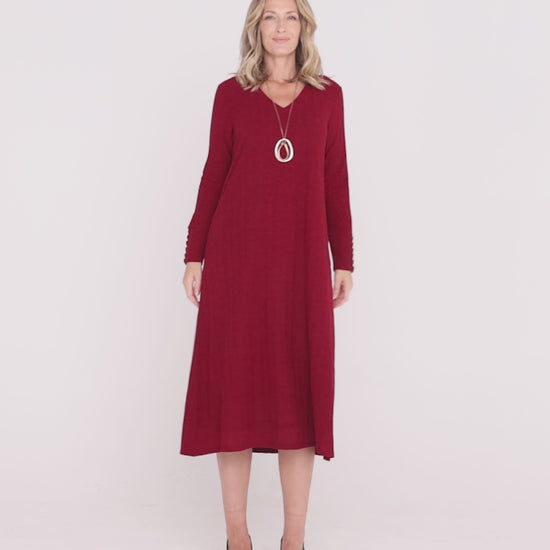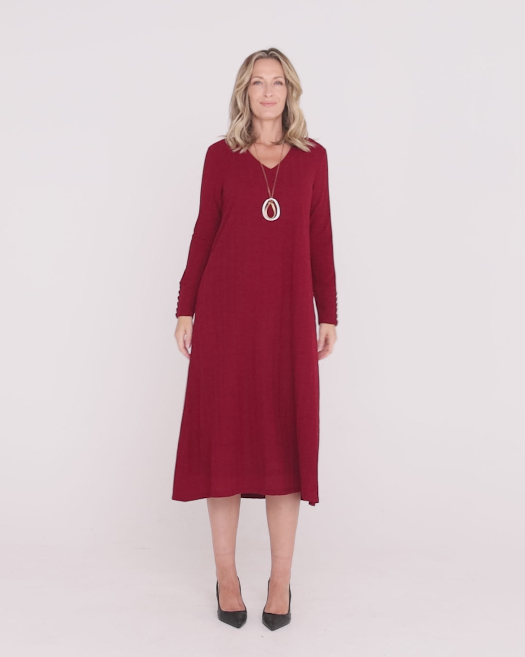 The Lucia Dress in Burgundy Marle is one of those effortless pieces that feels as good as it looks. The softly ribbed fabric with its marled finish gives beautiful depth to the colour, while the A-line shape creates a flattering, easy drape through the body.