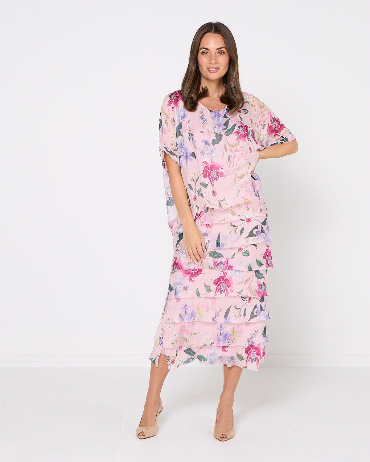 Margo Silk Blend Dress - Blush Floral
