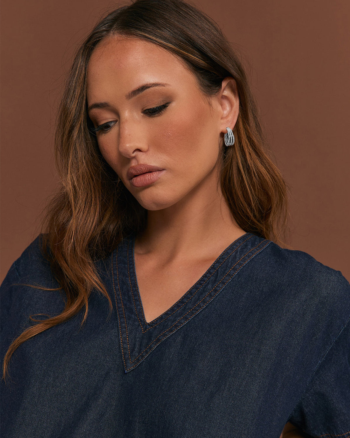 Delicate, modern and effortlessly wearable, the Mini Trio Metal Ball Hoops in Silver bring a subtle sparkle to any look. The three curved rows of petite ball detailing create a layered effect without the weight, making them a perfect everyday option for women who love refined accessories. Their compact size sits close to the ear for a chic, polished finish, while the clip-back closure offers secure and comfortable wear. These are the kind of earrings you’ll reach for again and again – ideal for work, weekends and evening outings alike, and beautifully versatile with denim, dresses or tailored pieces.