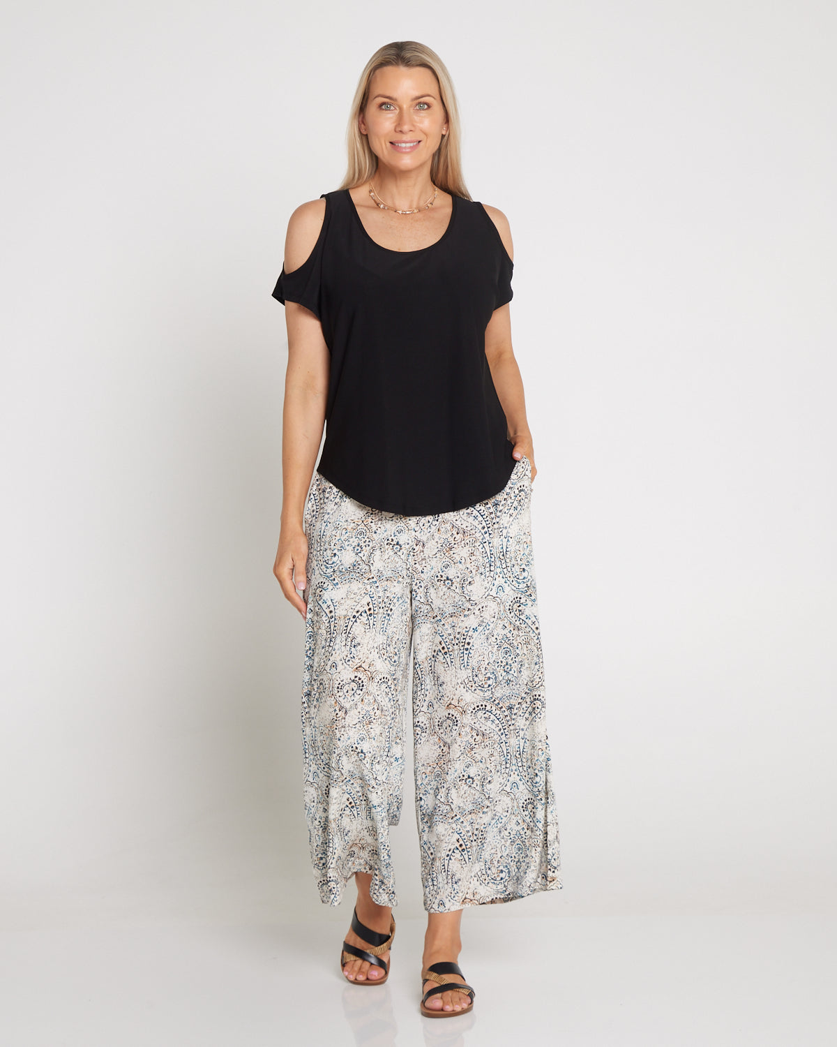 Bring effortless polish to warm days with the Oakley 7/8 Pant. Cut from a lightweight, non-stretch rayon weave, they drape softly without cling while the pull-on waist keeps things easy and comfortable. The sand and teal paisley print adds a subtle pop of pattern that pairs back beautifully with black, white or denim. Style with a simple tee and slides for brunch, or add a relaxed shirt and wedges for dinners and holidays—these wide legs move with you and feel wonderfully relaxed.
