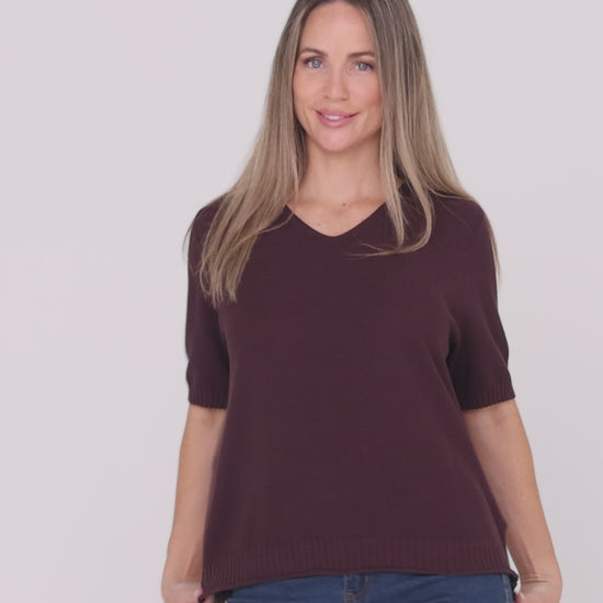 Rachel Cotton Knit Top - Plum