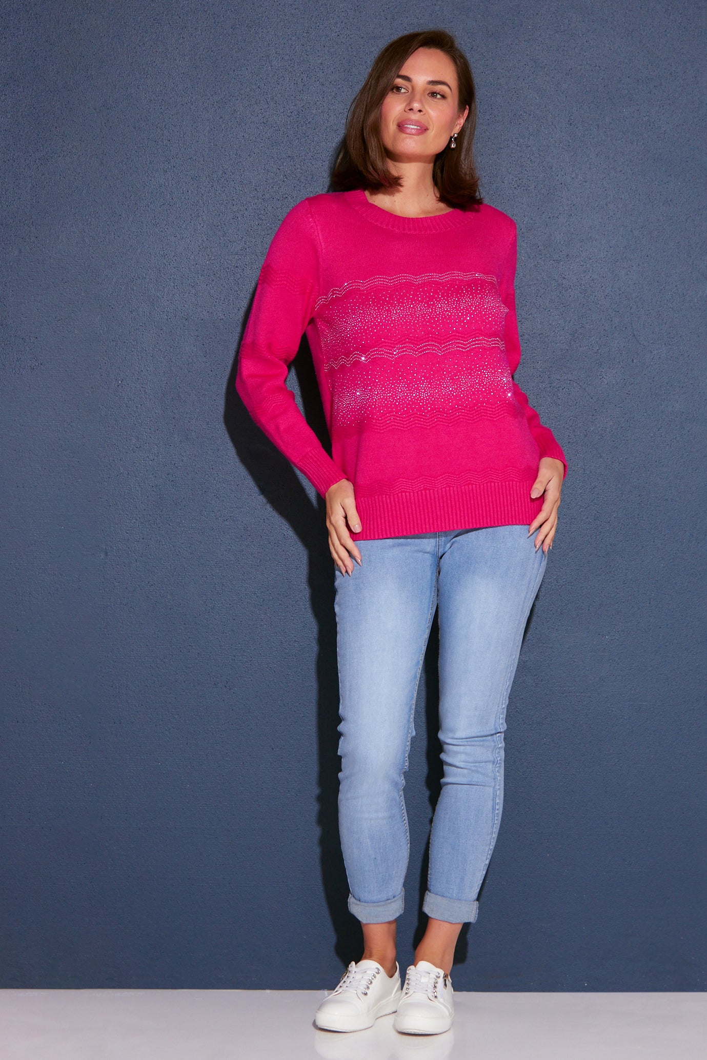 Robbie Rhinestone Knit Jumper - Hot Pink
