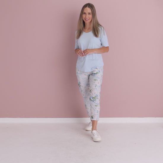 Bring a touch of elegance to your casual wardrobe with the Shari Pants in Blue Floral. Crafted from a breathable, cotton-rich stretch weave, they ensure comfort and ease of movement. The elastic waistband with drawstring gives a flexible fit, while the slim tapered leg and side pockets make them both flattering and practical.