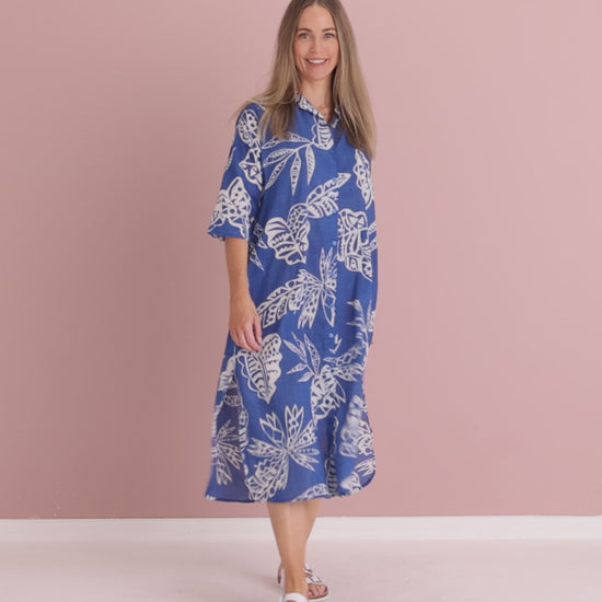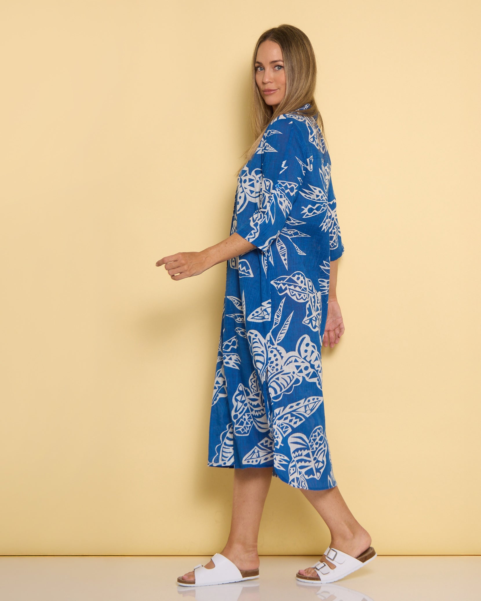 Infused with cheerful colour and breezy comfort, the Sofia Shirt Dress in the Tropical Stories print is a joyful statement piece you’ll reach for all season long. Crafted from soft, breathable cotton slub, the vibrant patchwork-style print blends vivid blues, greens, and pinks for a playful yet wearable look. The relaxed silhouette is perfect for warm-weather days, offering ease of movement and effortless flair. Just add sandals or sneakers for day trips, holiday wear, or casual lunches with friends.