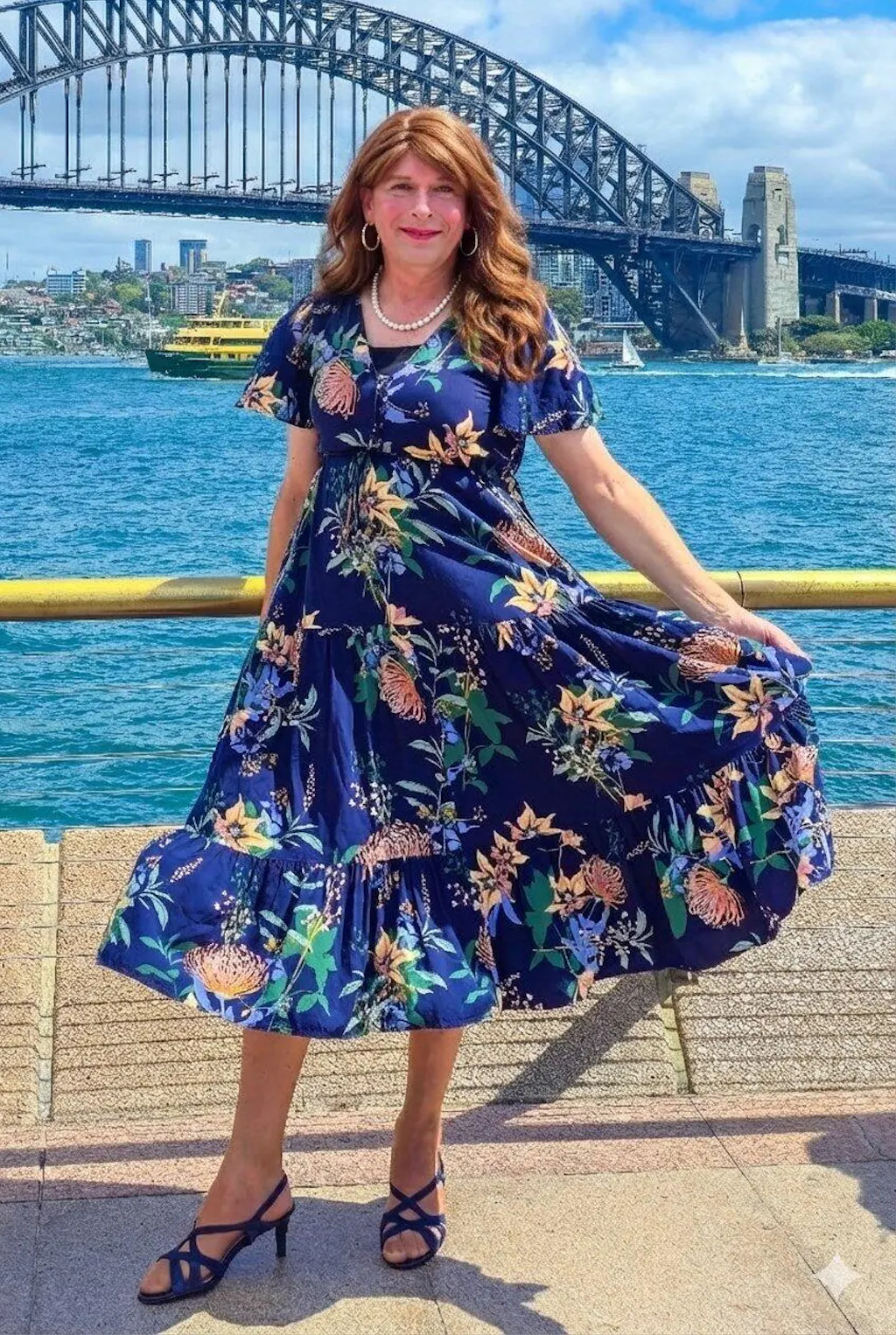 I absolutely love this dress. I usually find it a challenge to find dresses that suit my male body shape - I am 178cm - size 16 and this dress is perfect as it has a nice full skirt that just flows beautifully with its soft fabric and beautiful pattern - however to make it flow just a little better, I have had the front split sewn up to give it even more flow and elegance.