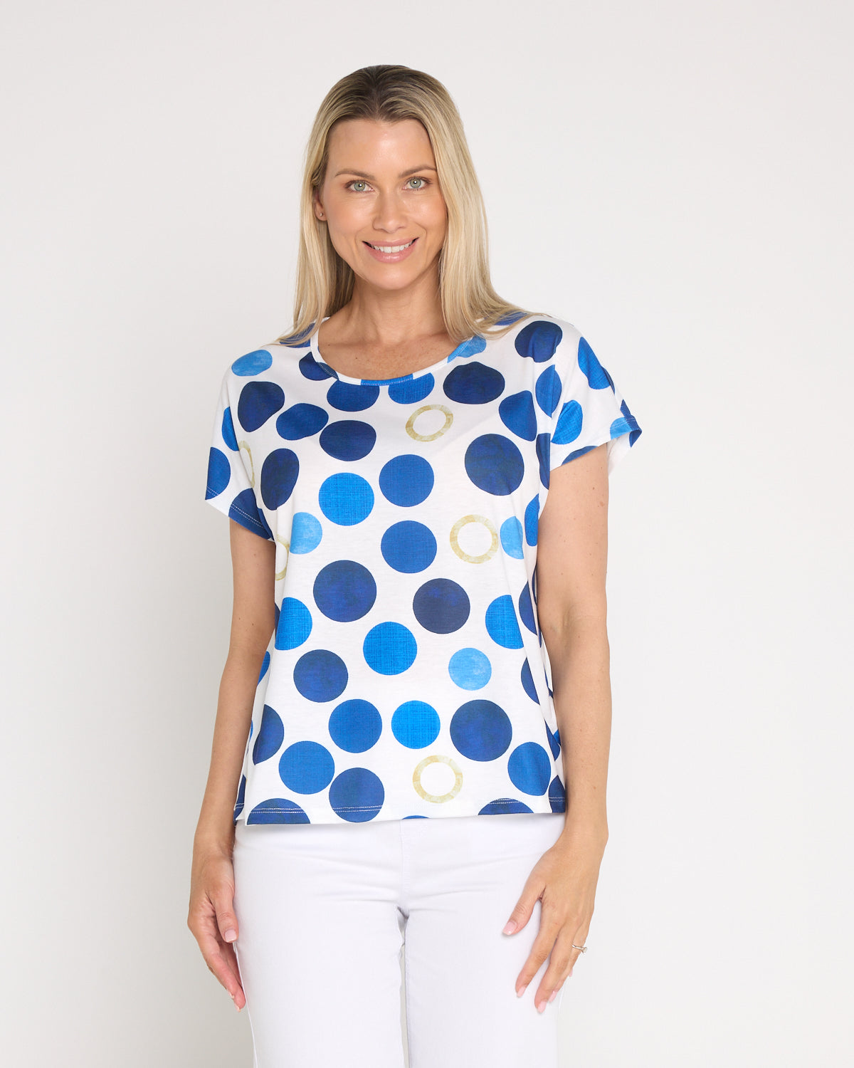 Fresh, fun and effortless, the Spotty Dotty Top now comes in an electric blue colour way to add a pop of colour to your everyday wardrobe. The soft stretch jersey skims the body without clinging, while the playful spot print lifts simple outfits in seconds. Easy to style with denim, white pants or a swishy skirt, it’s a reliable go-to for coffee runs, casual Fridays and weekends away. The easy-care fabric washes and dries quickly, making it a brilliant travel piece for warm Aussie days.